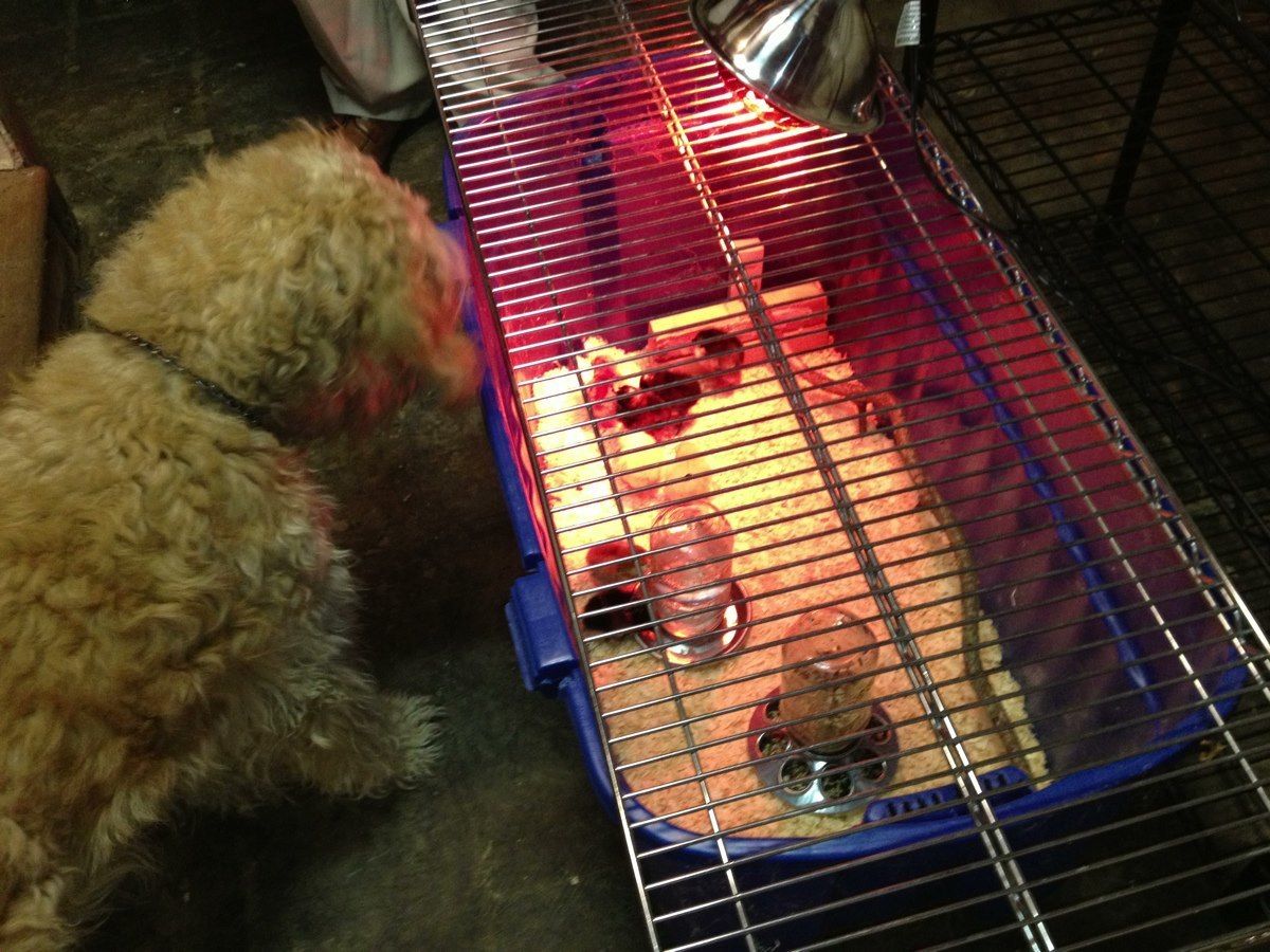 settled in - I was nervous about the feed (homemade, *have* to avoid gluten, corn & soy), but they've been happily eating away. I dropped in some violet flowers this morning & they were chasing each other around - silly chicks didn't notice I was fair and brought one flower for each of them with their morning greens.