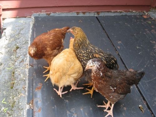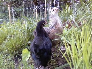 The black one was left here by a kid in the neighborhood a couple of weeks ago (who knew I'd had chickens before), after it was seen being chased by a cat (I'm told).