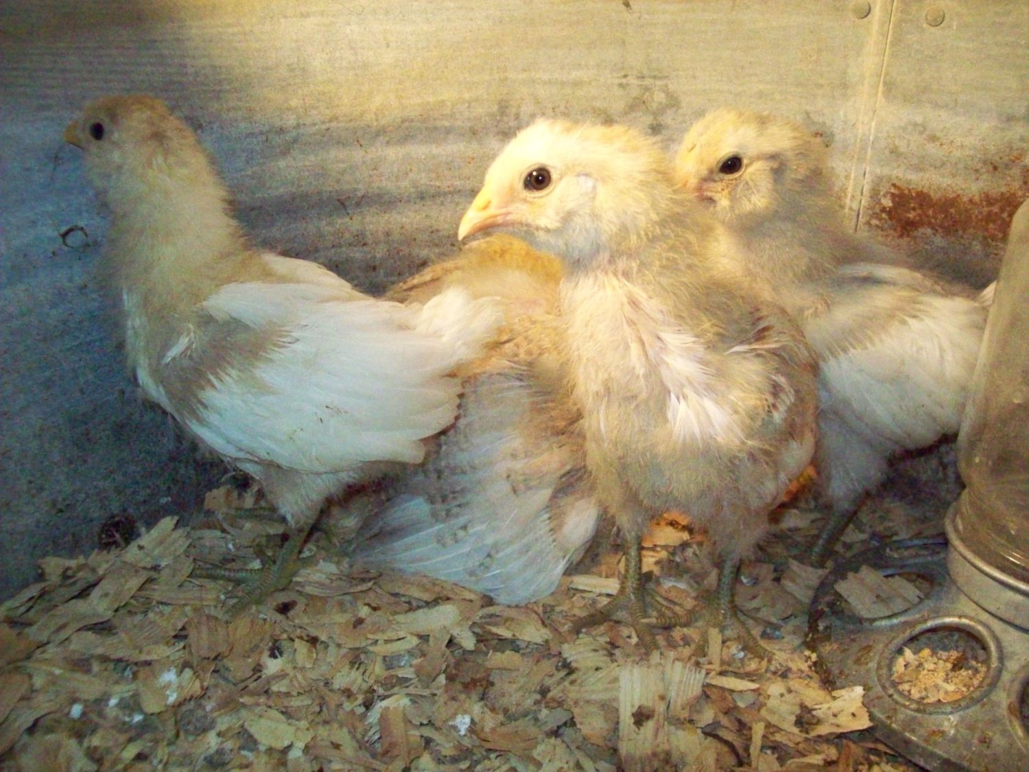 I am so impatient, I keep going down to see if my girls have any more feathers that might clue me into what kind of chicks I got, so far we have a few wingtip feathers and a few tail feathers coming in. My DH named my 2 unnamed girls, the bantam is now Hellen Keller and my 2nd largest is Susan B. Anthony (can anyone guess what his favorite subject is in school). After telling my parents all about my babies, they had to rush out and get their very own, lol. They live in Richardson Tx with a fraction of a yard because they also have a pool. My mom had always wanted "like 2 or 3" laying hens, now they have EIGHT!!! So my 2 plus my moms 2 is now 4 and 8...CHICKEN MATH!!!