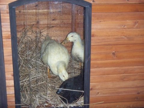 Here at the ducks in their bed. Now, how to get them to actually sleep in it. Everytime we put them in, they come right out. It's now 11 pm and they are still playing out there - not sleeping. Maybe it's all the excitement.