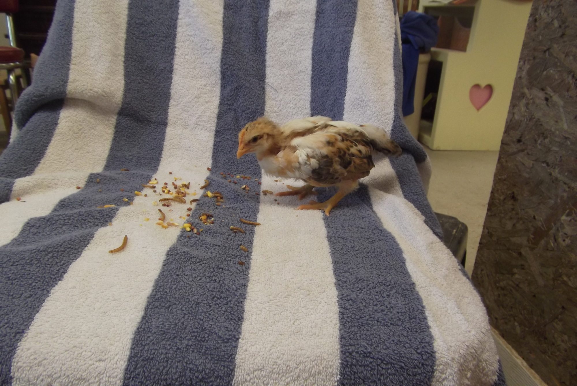 HEHE... Here ya go HEChicken! I just picked them up about an hour ago!! Rene hath bless me with three beauties! One of them, unfortunately, has spraddle leg, but I've already gotten out the bandaids and we are on the road to recovery with "her"! Thanks Chooks!!!!!!!