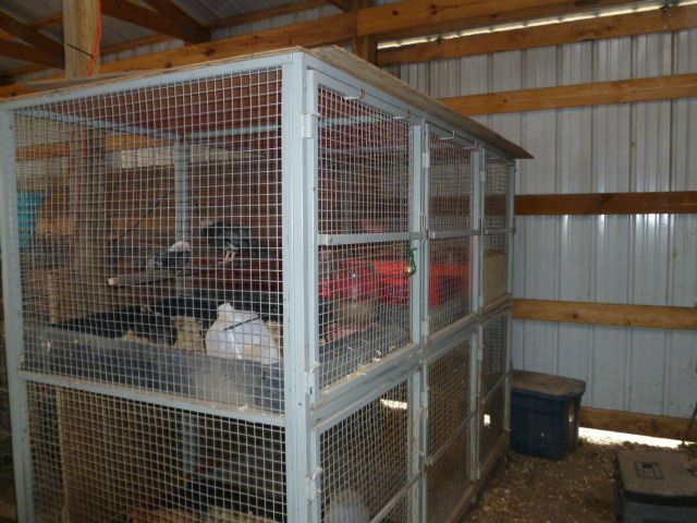This is the set of cages I moved into the barn a couple weeks ago. You can see some of my young birds enjoying their perch.