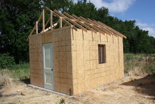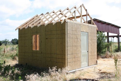 I had guesstimated the number of sheets of OSB I would need and came up one short. You can only just see it in this pic but we got the roof peak OSB cut and installed on the north side. The south side should be easy because we noted our measurements and will be able to snap a chalk line, get it cut and installed quite quickly, I hope.