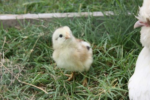 HeChicken, great job on the coop, it's looking great! Do you want to come help me build mine when you're done? Just kidding, I'm always trying to recruit someone because my DH is so darned slow & I have to listen to the whining & griping the whole time we're working because he hates building things. The chick is really cute too, it kind of looks like one I sent to Pittsburg last week, it was an EE also & about that coloring.