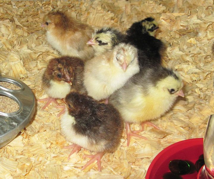 They will change a lot in the next few weeks. I will have to try to get pics of the older ones so you can see what I mean. But there are quite a lot of colors in this bunch. I don't know if you can see it or not, but the black one in the back right may end up being crested, we'll see when it gets older, but it seems like it has kind of a poufy head. All of the chicks are different, the same as the first batch was.