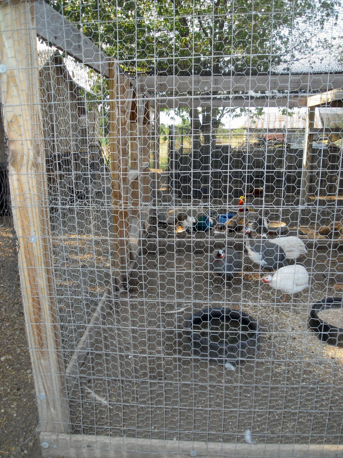 Hawkeye, that is the basic design we use for our pens now. It works well and other than setting posts is pretty easy to construct. I need to get the pens for the new building finished. We only have one pen done and need to put in at least 3 of them. That is also the plan for when the chicken trailer is done for the outside runs. It runs into some expense for wire but they are super sturdy and nothing gets in or out. That picture actually has two pens lined up together. We planned to install another one there but the power pole is in the way so we would have to offset it by 8 feet or so. I built these pens for pheasant, but as you can see the guineas are in one and a pair of peafowl and 2 pairs of pheasant are in the other.