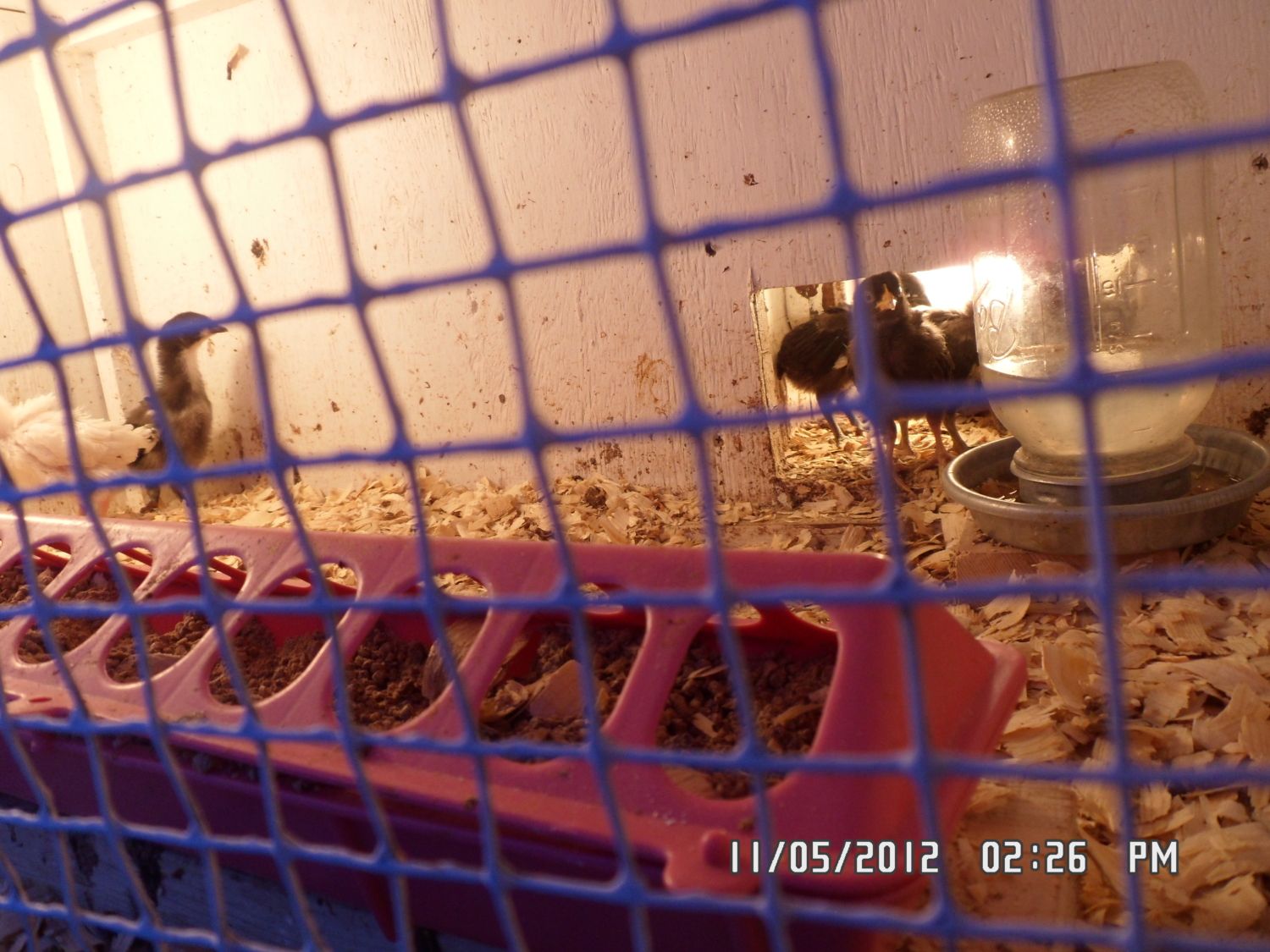 Michelle, I thought starter/grower was chick feed. That's what mine eat. I got some pics for you. My chicks that age are not staying under their light completely, they have it if they want it. I got some pics of them too. I feed mine starter crumbles for a few months and then switch them over to layer feed. There's usually enough starter crumbles left that we can mix it half and half with the layer feed for a couple of weeks. As they get a little older and start getting feathers, they will move out from under the light sometimes, often when they want to sleep.