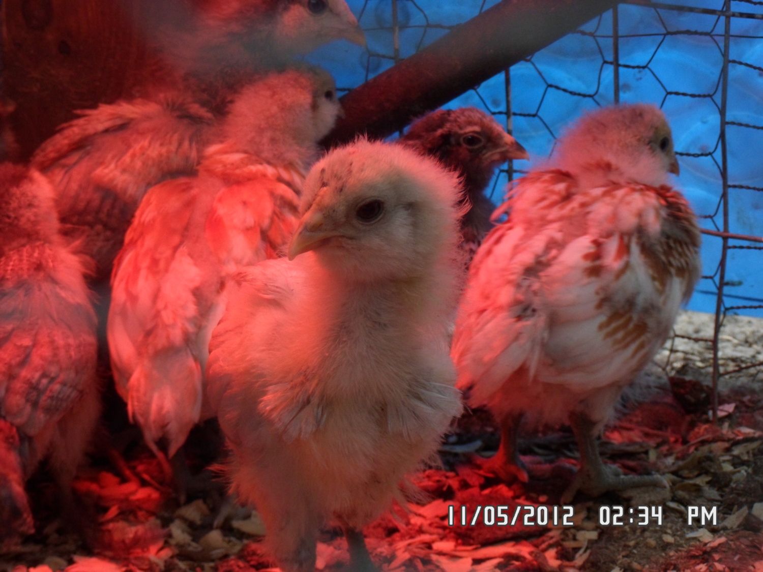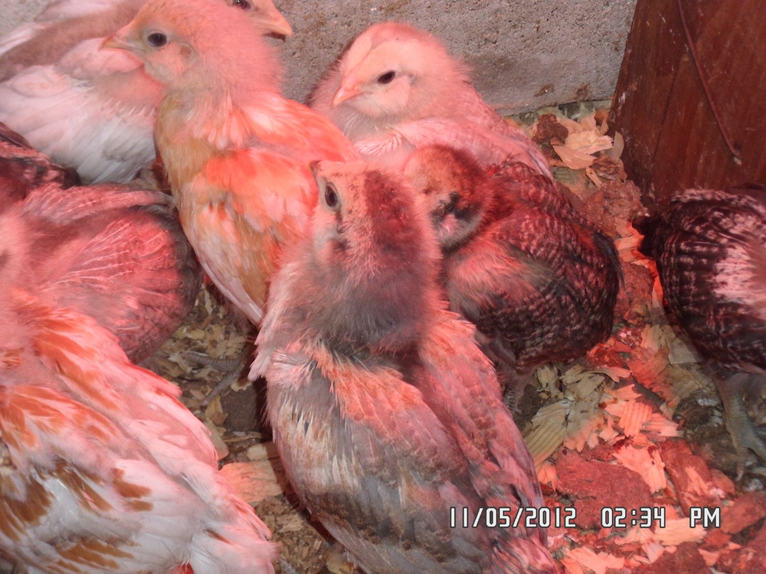 These were supposed to be Ameraucanas but they don't look like it to me. I think they're EEs and they're 3 weeks old. These are the ones that have so much personality, or chickenality, they let me pick them up and they come to see what I have for them. They're very smart and quick to learn.