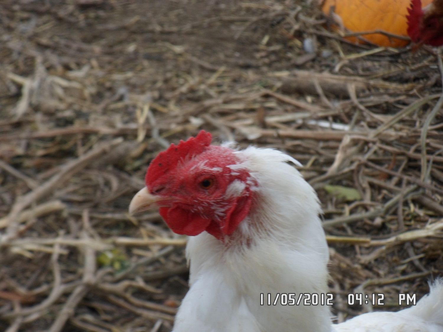 I hope the one with more red on her face isn't the offspring of this hen. She's nice and all but all that red on her head gives me the willies. I sent my ds out to take pics of the black pullets yesterday and he took this one too just to creep me out. Anyone know what kind she is? I don't know where we got her from.