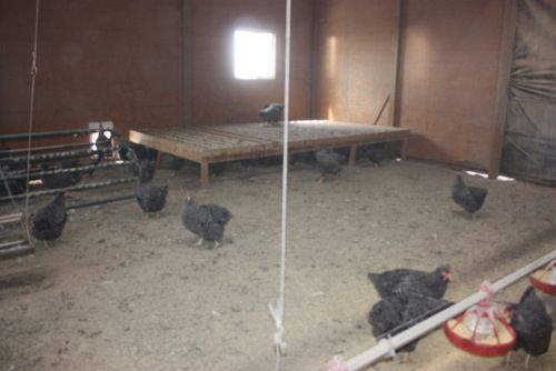 Here is the barred rock pen, showing the roosts in the corner. You can also see part of the automated feeder system in the lower right corner. I think there is a better pic of it later, and Hawkeye took a really good one of it that she can post later, I hope.