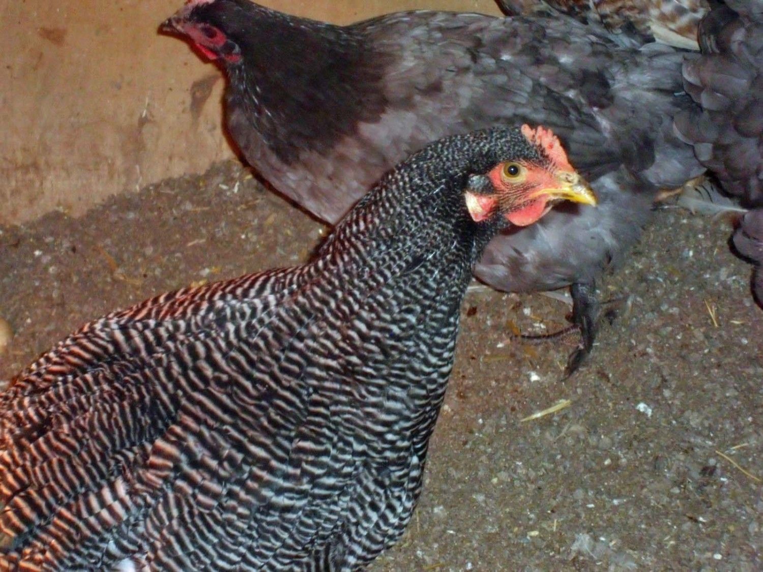 Hawkeye I have some great barred rocks I got from Eileen and they are the right size and body form. It's just that they don't have the fine barring that Franks do. I figured I could take Frank's roo and try to breed better bars into them. I am sure I have several boys in my chicks but I'm not wanting to wait that long for breeding. Since I only had him hold two pullets for me I don't want them to take up a special coop pen space.