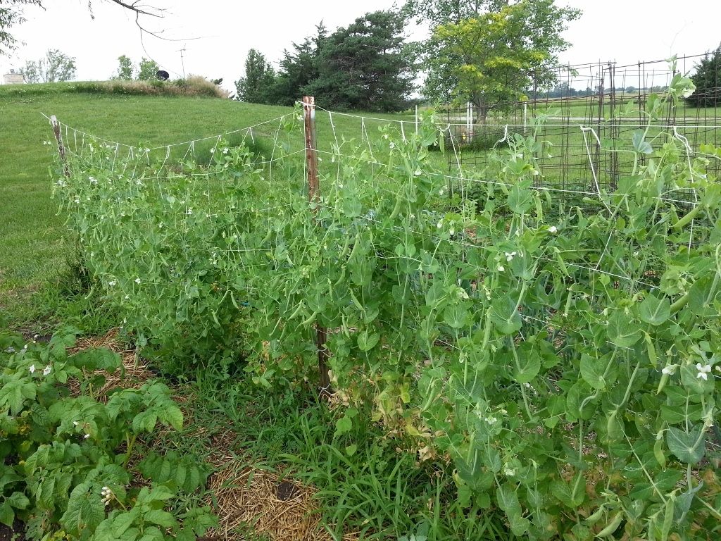 What a gorgeous picture of your garden. If I add another plot next year, I plan on planting about 3 times as many peas. I think I'll plant some snap peas, too. When we plant the peas even two inches from the trellis, they don't seem to reach for it and we spend a lot of time trying to train them onto the trellis. This year we planted them right under the fence and there was no problem. I'm not sure how that would work if we did more than one row, but I'd like to try it next year (assuming I remember!). Do you do that with beans, too, if you plant beans? We plant the peas close together, too, and have never had a problem because of it.