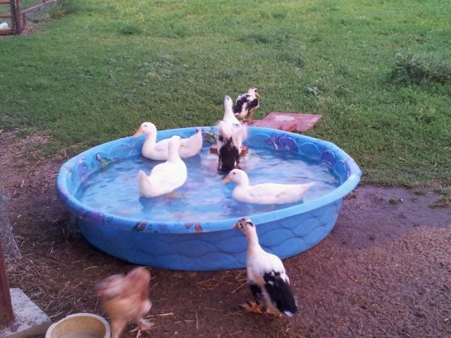 ). They are enjoying the pool with clean water. I have to dump and replace the water at least twice a week. The chickens also drink out of this pool even though they have two 5-gallon water buckets to drink out of.