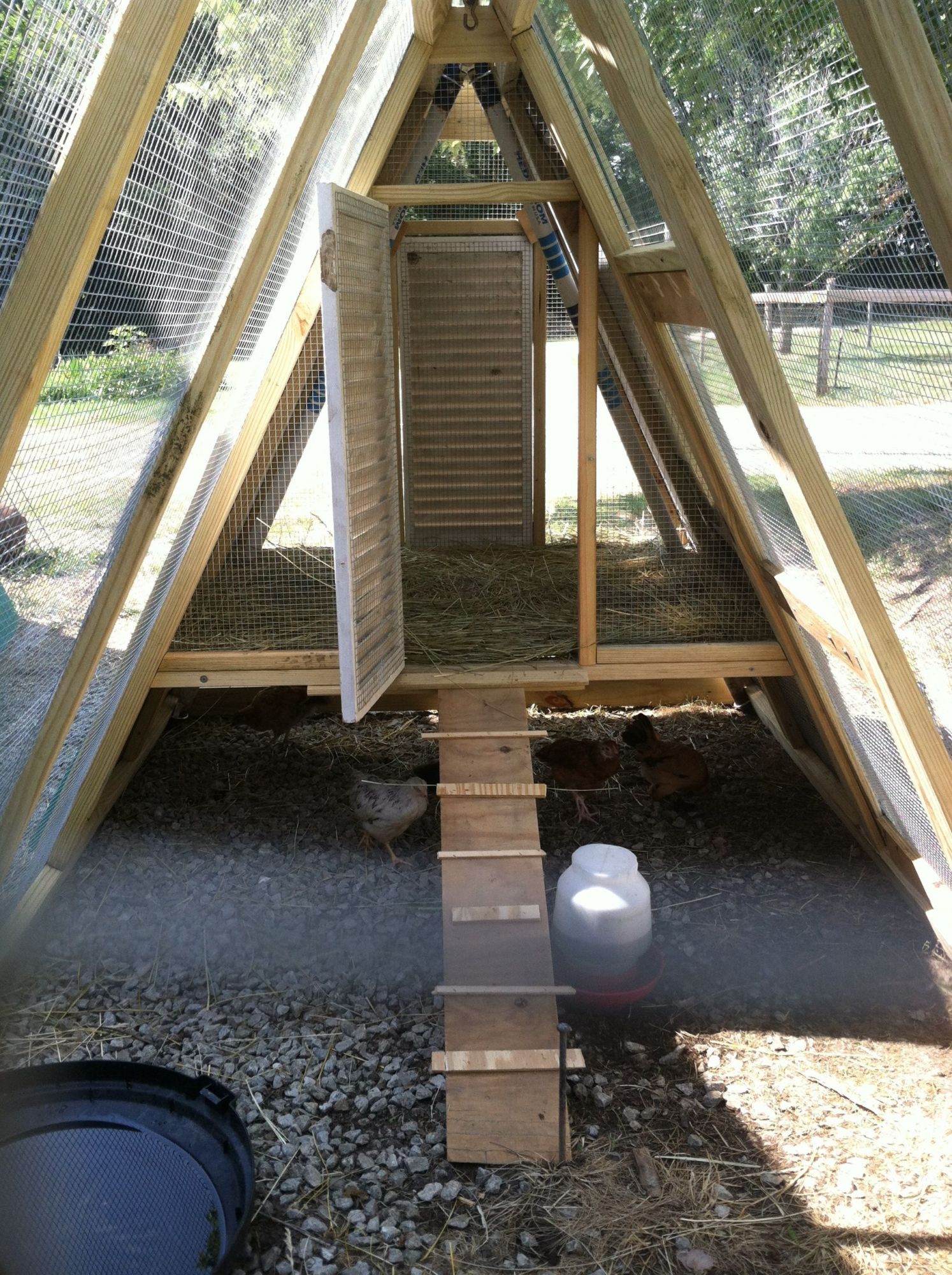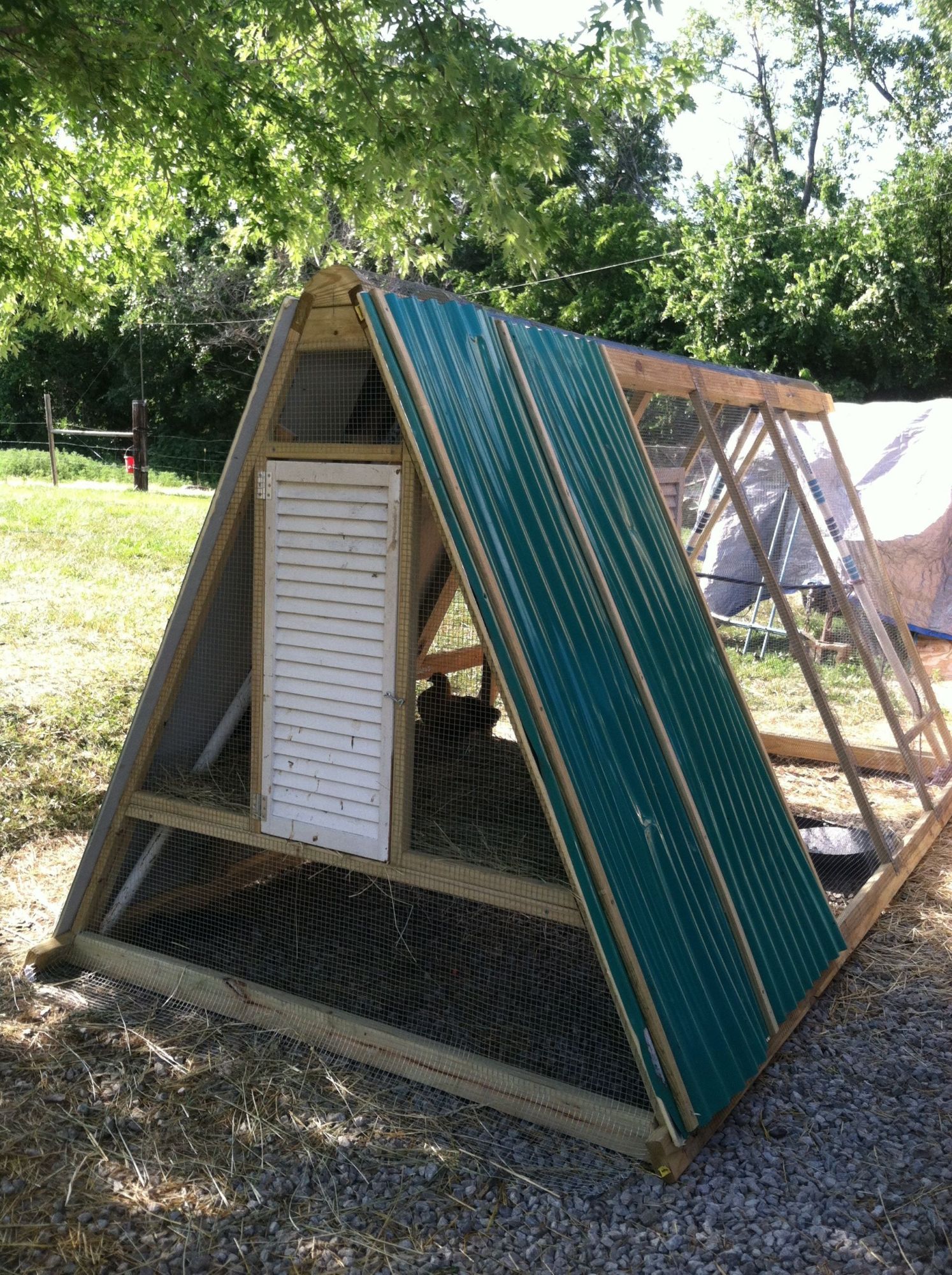 Hi, all. Whew, it's been a busy couple of weeks ,lots of good family,summer vacation stuff. ( other than a coon visit) . So we had to go to work. We had this old kids swingset tucked in some weeds at the edge of the yard that we just hadn't gotten around to getting rid of. Seemed like there was potential there, ( full disclosure , we have a lot of "stuff" around here that could have potential ) I seriously don't know that we saved any money by up-cycling but we really like how it turned out . I am SO great full to my sister (skills & tools) and DH (engineer) they were amazing!!!!! There are still some bells and whistles to finish but the security is solid . Oh, and so last night, first night the little ones were in the new digs the coons came back ! They didn't fair so well this time. Old dog got one and DH got another the mother got away tho.![]()