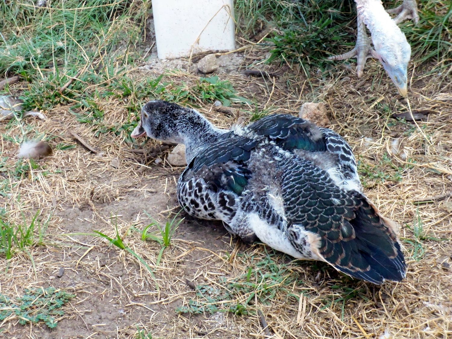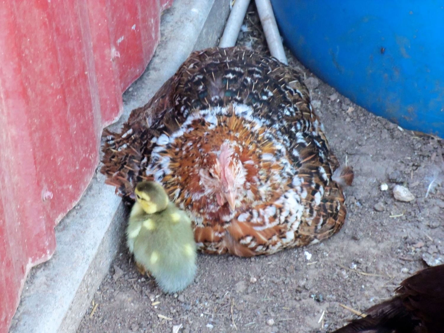 And, ironically, this time the eggs under the ducks have done well and yesterday 5-6 ducklings hatched. They are in a barrel nest with, I think, 1 broody duck and about 5 broody hens. The six "mamas" seem to be sharing the ducklings well but continuing to sit on the remaining 2-3 eggs.