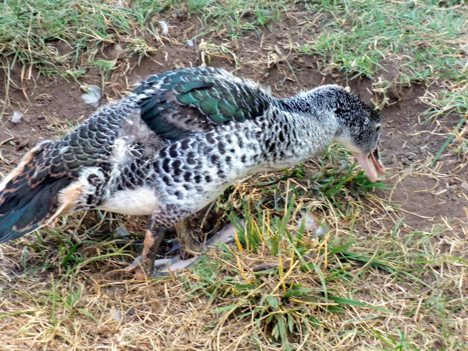 The first to hatch contained a lone duckling and it was about 10 days old at the May 13th get together. It started out being a mostly yellow duckling. Here he is now: