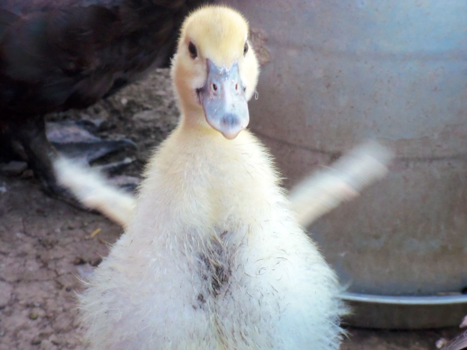 And here is the lone yellow duckling from this hatch, who just happened to stand up and flap his pathetic little wings as I turned the camera on him. It was too good not to share: