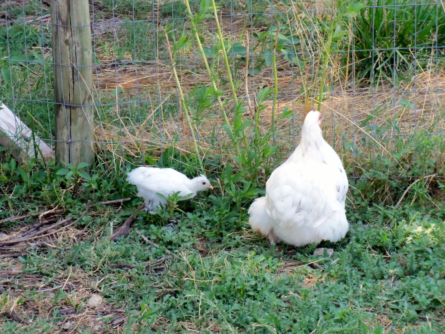 Now for chickens. I color code my mama hens and their babies LOL. I have a white cochin raising a white baby: