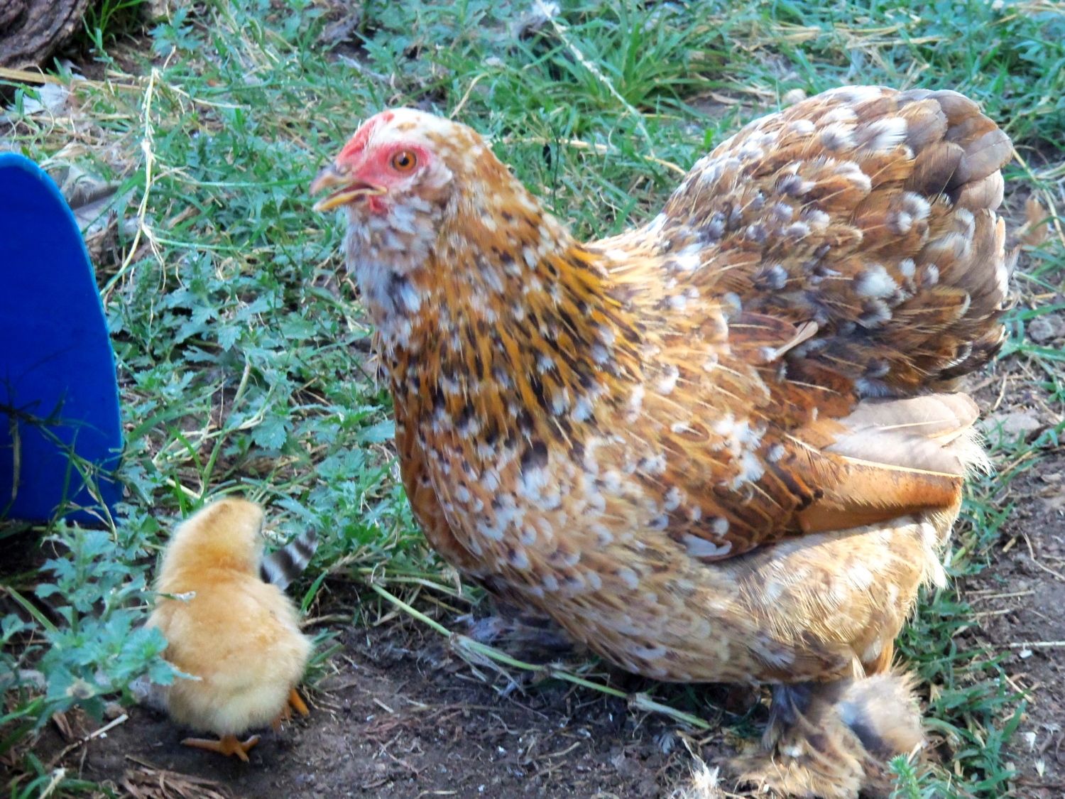 I'm kicking myself now that I didn't take pics of my blue cochin raising a black barred rock chick!