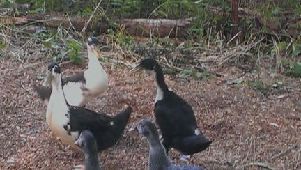 You can see all the ducks just standing together, they started walking around as a group right after the 3 new ones came home.