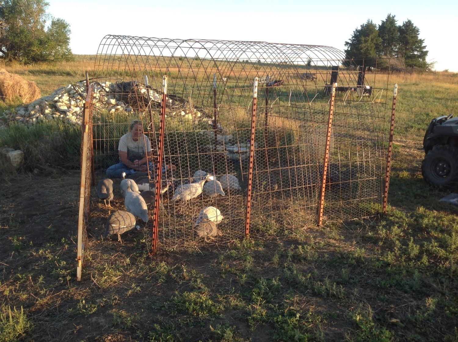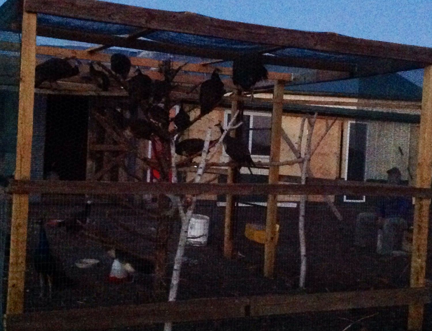 The old chicken coop/yard is now the new Pea house/yard. Too dark for a really good picture.