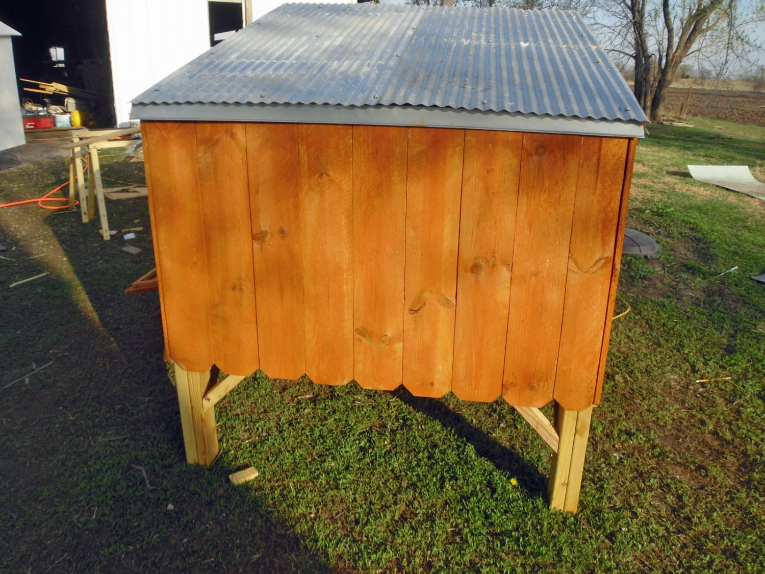 It was a fun project and it didn't take that long. Other than I used dog earred treated fencing and to save fencing I had to make my own dog ear cuts on all the left over scraps so I could double up use on them, I really liked it better without the stain but the only waterproofing I had on hand was colored. I had to treat the sliding window and any white wood and plywood I had to weather proof it. My tin for my roof wasn't new so it doesn't look great. After I get the ramp painted I will take a follow up picture.