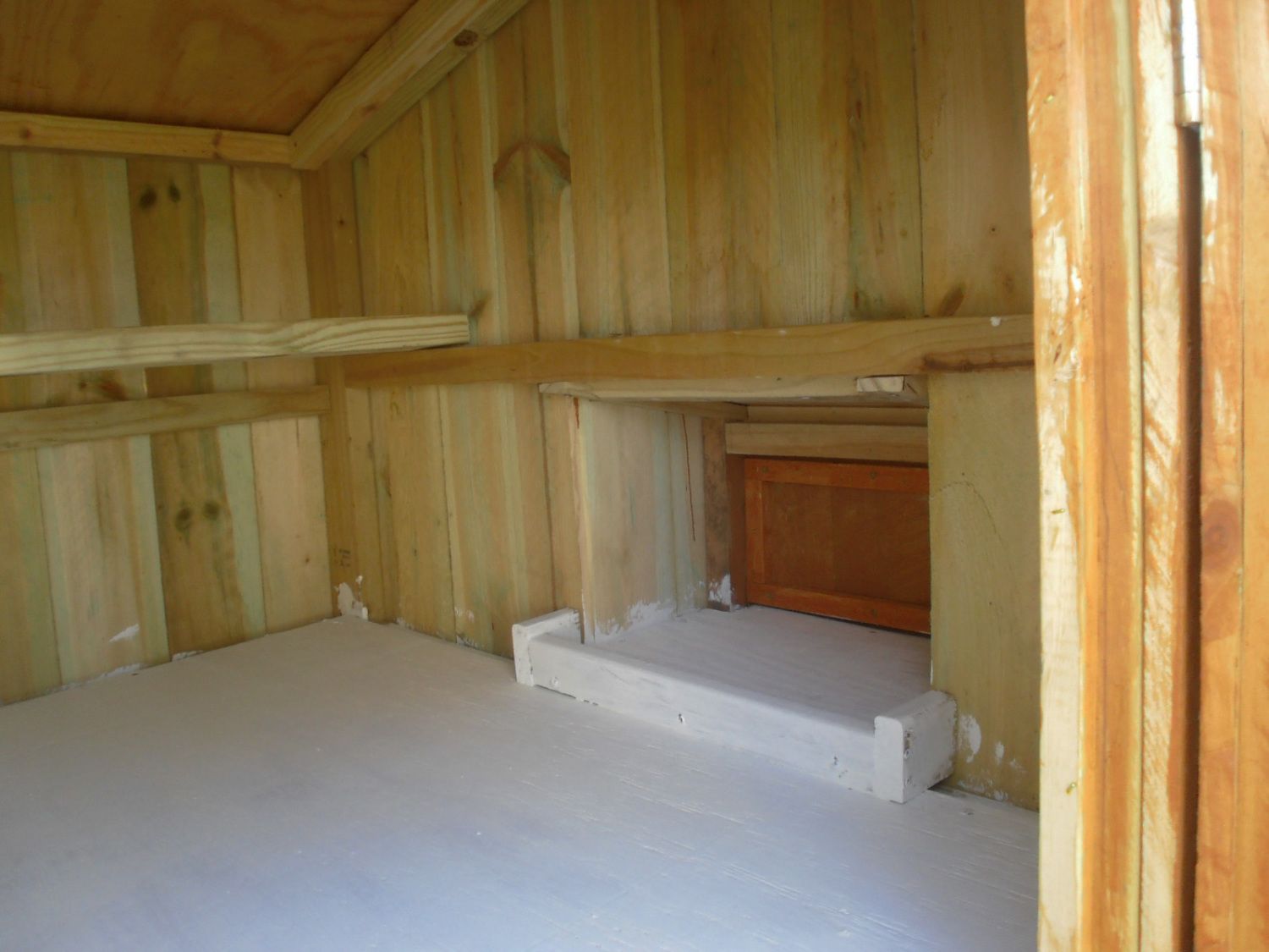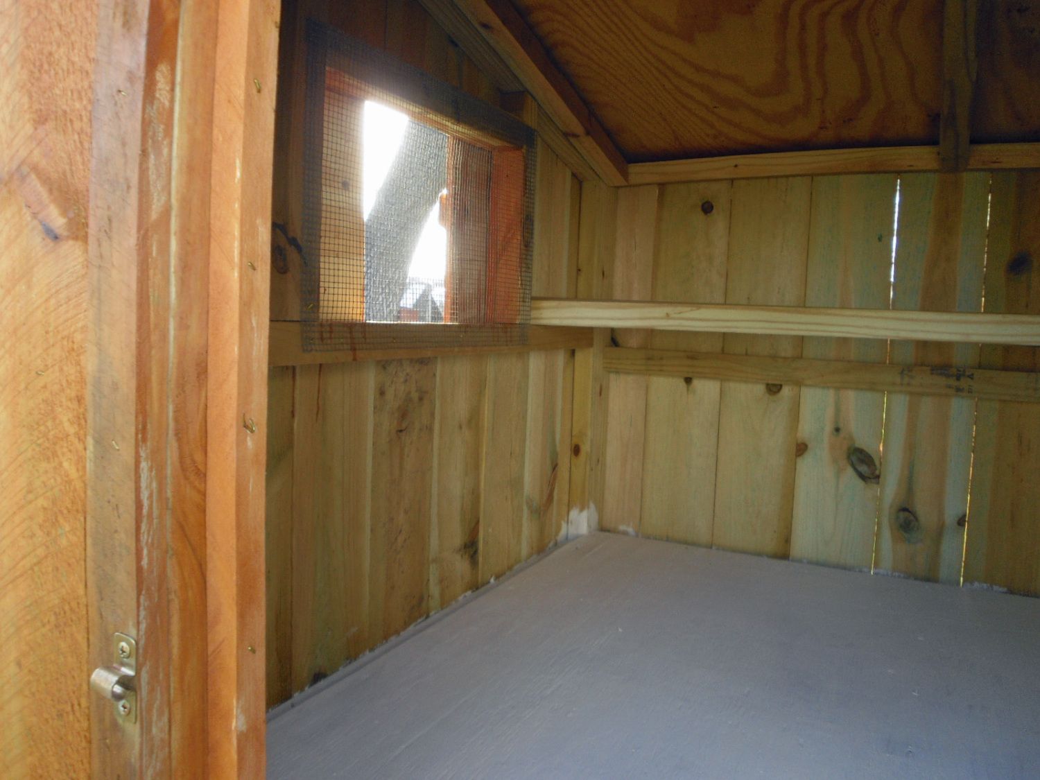 Well I finished my coop yesterday. I slopped some stain on the outside and put Kilz on the floor inside. I did a sloppy job so excuse the paint splashes. I was in a hurry. I also built a ramp that I have to stain yet. It attaches to the front of the clean out door with pull pin hinges so I can pull the pin to remove the ramp when I need to clean out the coop or get inside for some reason.