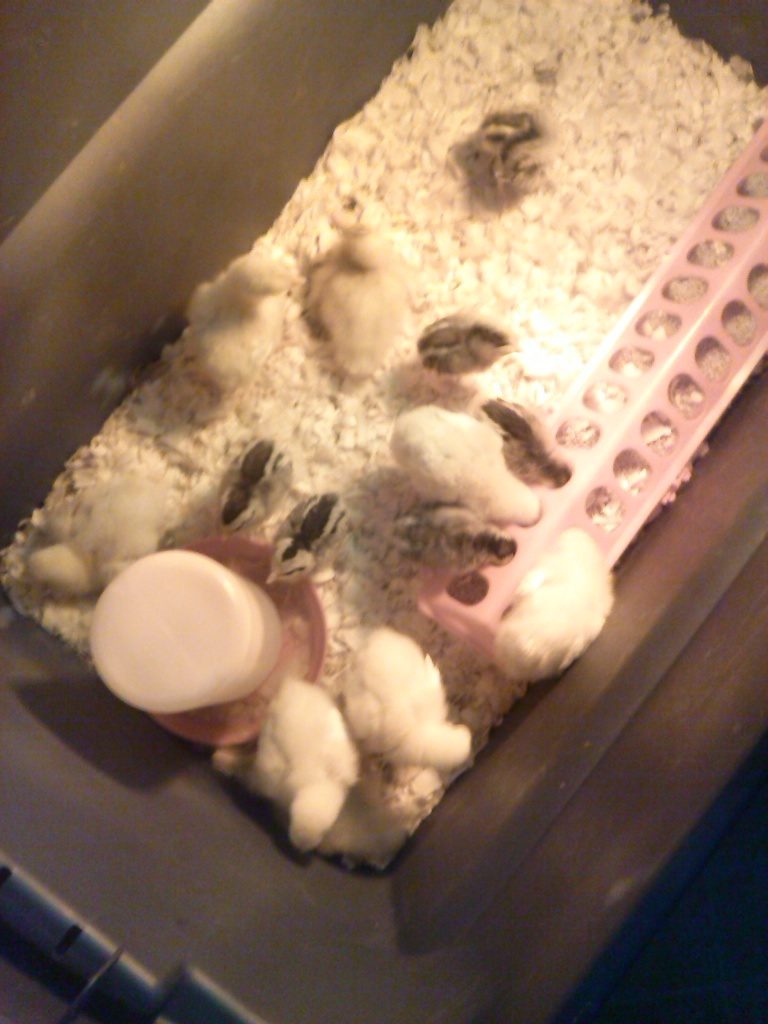 These are my babies. Six Cornish x. Six EEs. And my two yellow unknown breed ducks.
