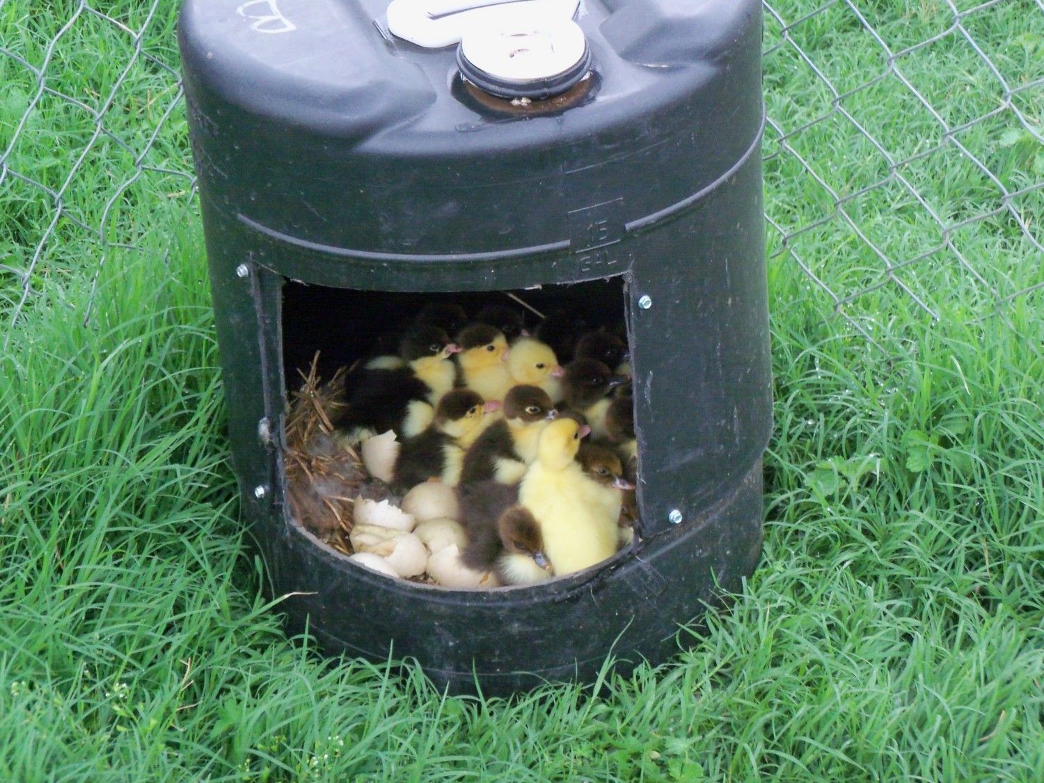 I am starting to get over-run by Muscovy duck babies. I just kept too many hens this spring. It's mostly my fault because I made several nest for them out of cut down 15 gallon barrels. I also have been using them in my breeder pins, and when a hen goes broody I move her to my "hatching pen". They don't always get their own eggs. As I moved a Cuckoo Marians hen last night and gave her guinea eggs. I also took some photos.![]()