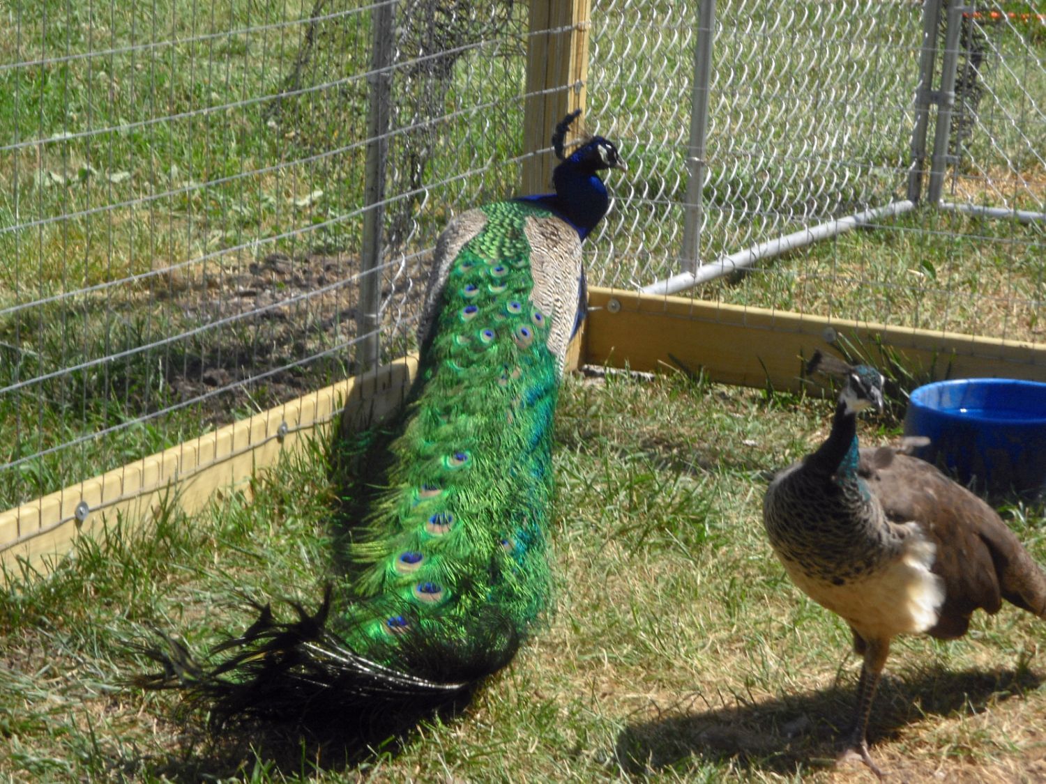 Danz your peacocks are beautiful. I too like to watch mother birds raising their young the natural way, and have found that left to to do it their own way, they are almost without exception excellent mothers. I currently have a bantam cochin raising two turkey poults for me. She overcame the language barrier and they now respond to her calls and she responds to their panicked cries when they don't know where she is. I let them out of their temp pen for the first time yesterday and she showed them quite a bit of the chicken yard over the course of the next 6 hours.