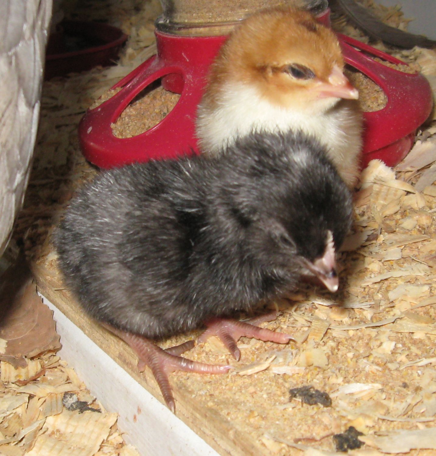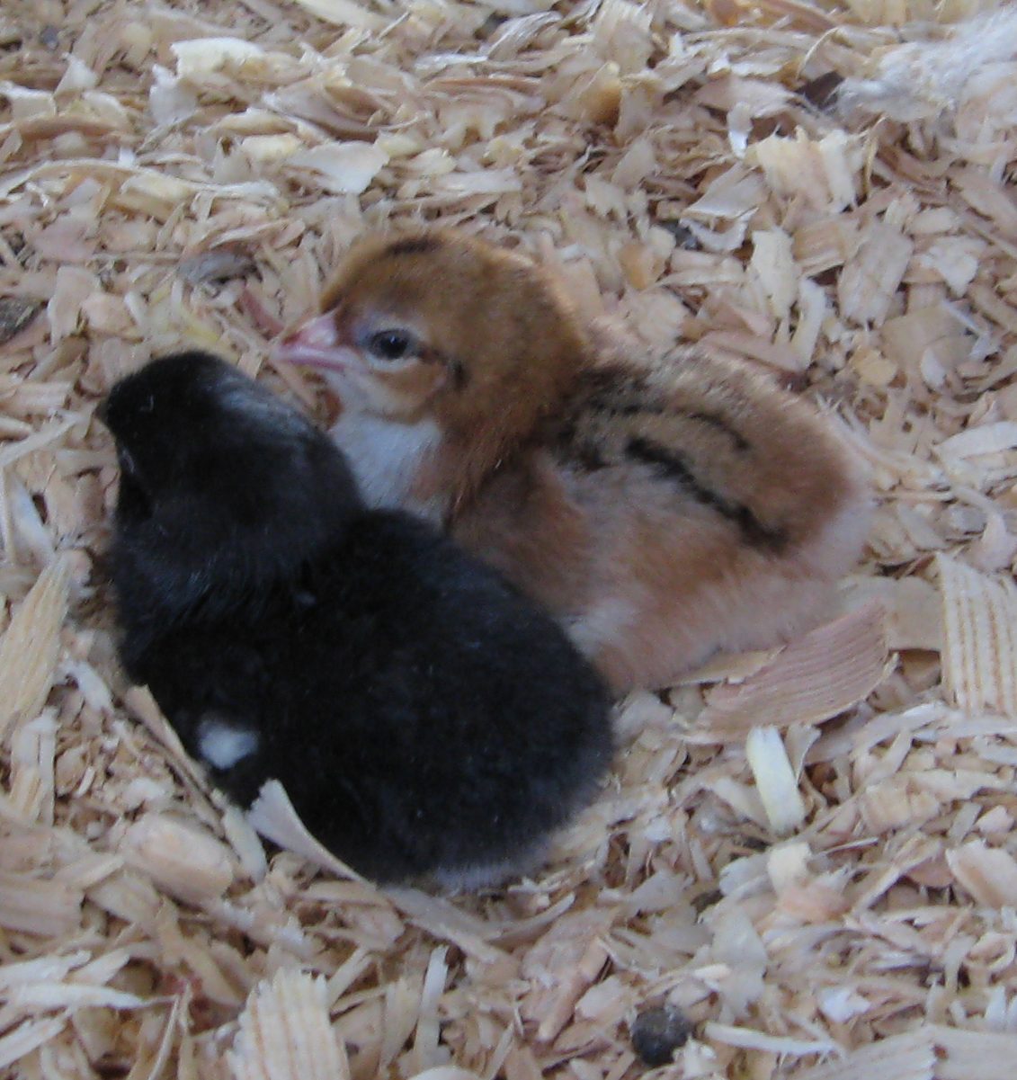 Zoom in on this one. The BR has an impressive comb for a 1 day old.