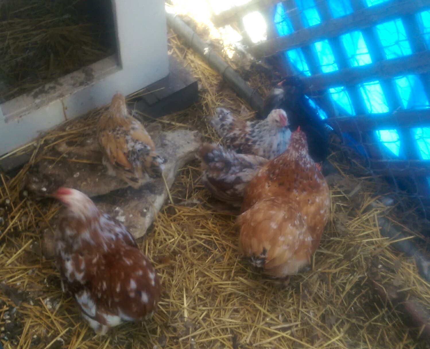 Thanks Frizzled for the NY's wishes, I sure hope next year is better for me, I need a break from injuries for sure. Here is a pic of my little Cochins, not a very good one, I just had my phone with me. I wish you could see their feet. Oh & I haven't brought the Mottled one out yet, they're still in the brooder. Your Cochins are pretty!