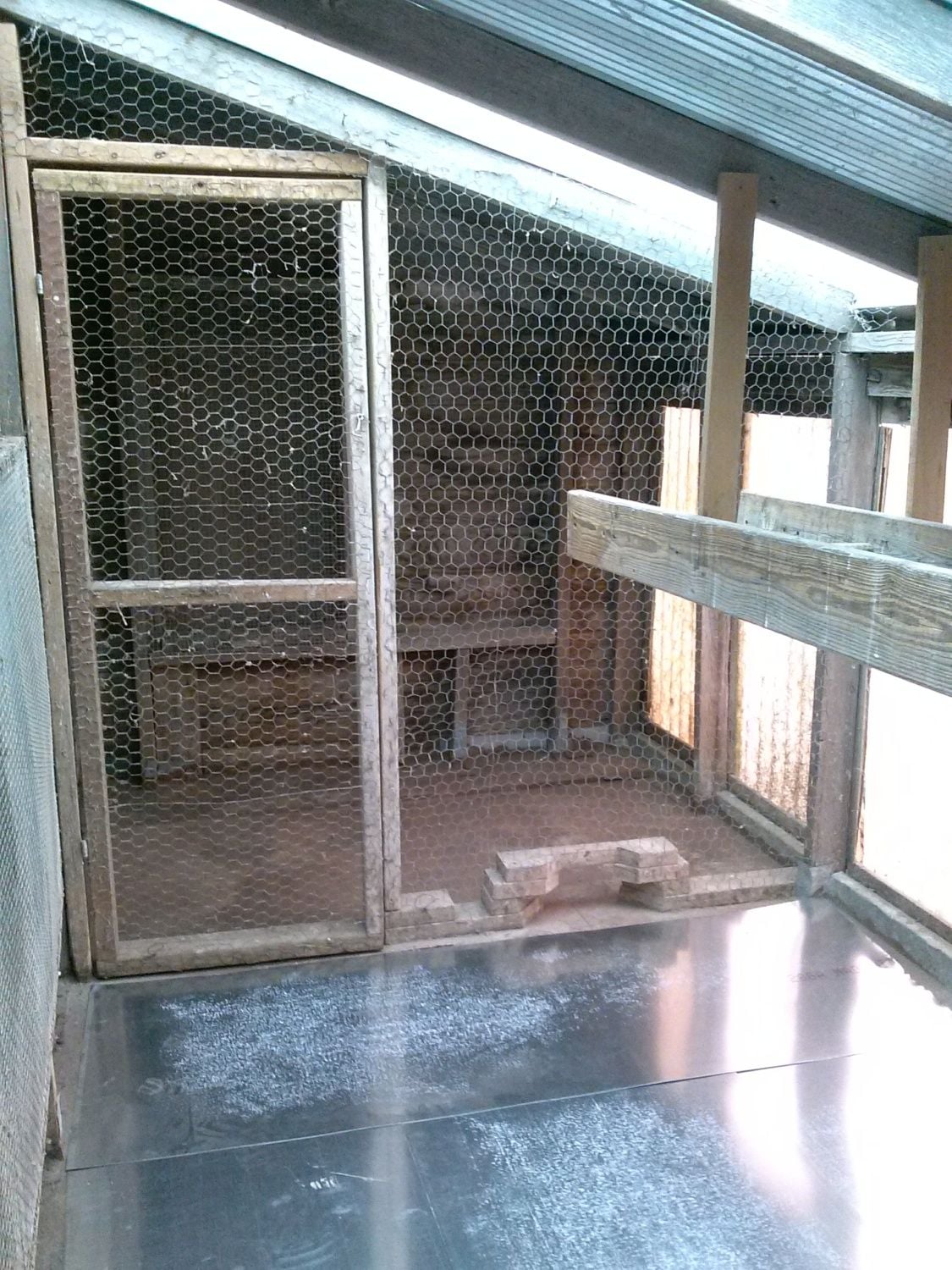 I'm having trouble trying to visualize this set up. I am assuming there is more to the building besides what you are showing in the pictures. It looks to me like possibly a brooding area although without something on the chicken nettting I wonder that it would be warm enough. You'd have to have lights or something to warm it and probably plastic over the netting to hold the heat in. My concern looking at this is the metal on what I assume is the floor. Immediately that sends up red flags. That is asking for leg injuries if their feet slip. I'd paint that with a rubberized paint that has texture in it or something so it would be safe. They make a rubberized paint Iike that for step treads and stuff.