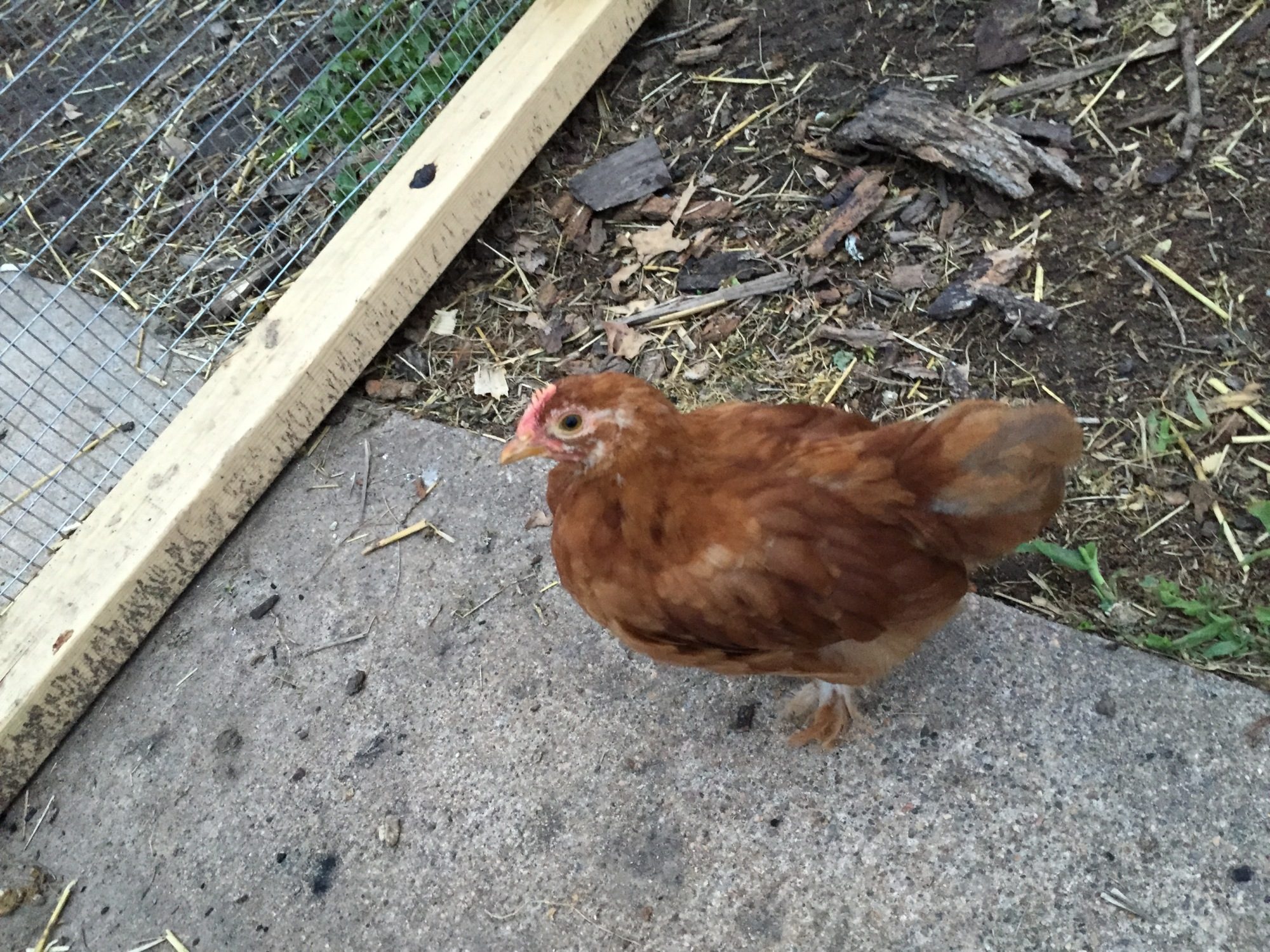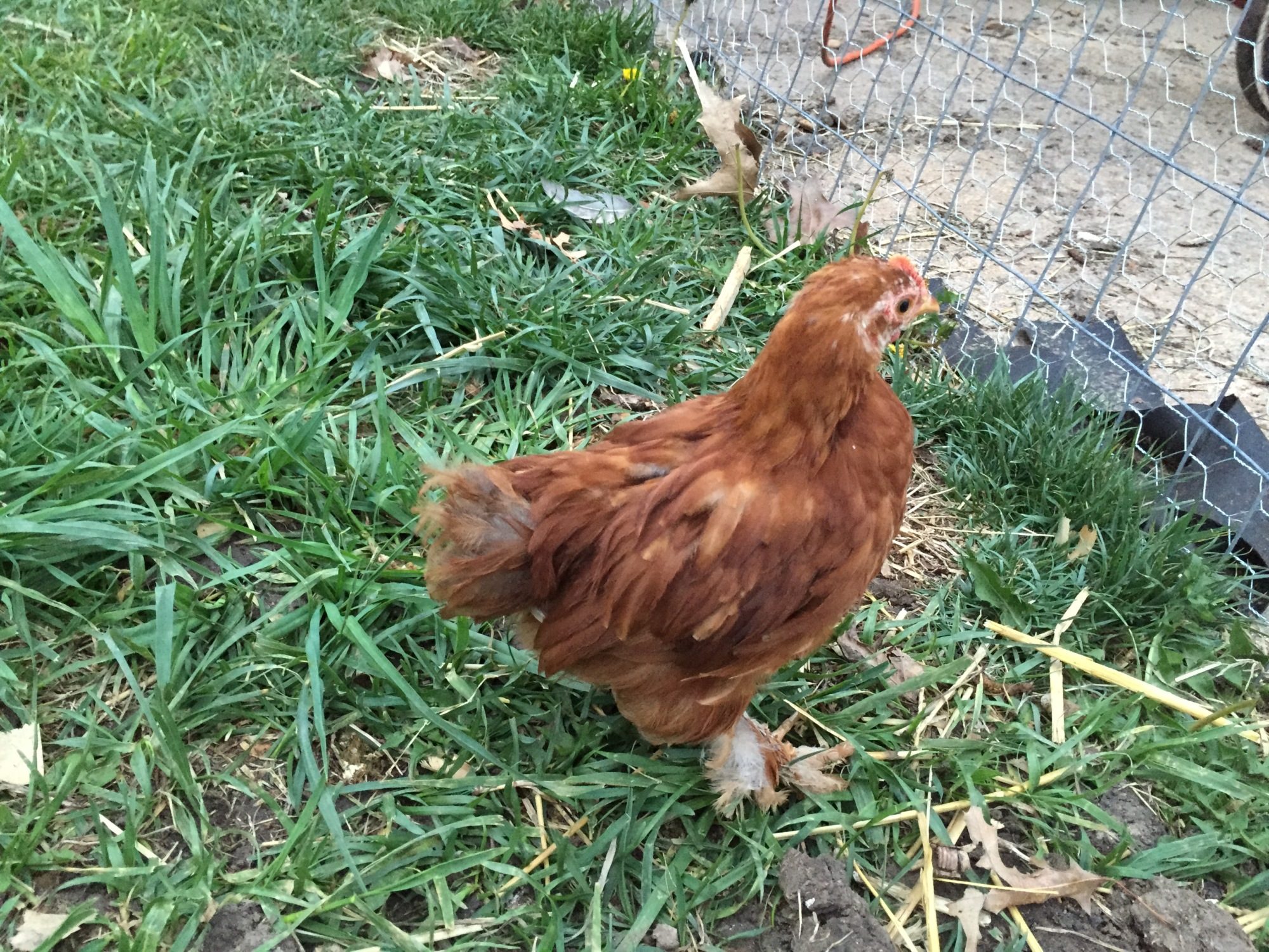 This little lady like to hop on my arm while working in the run & coop. Red cochin.