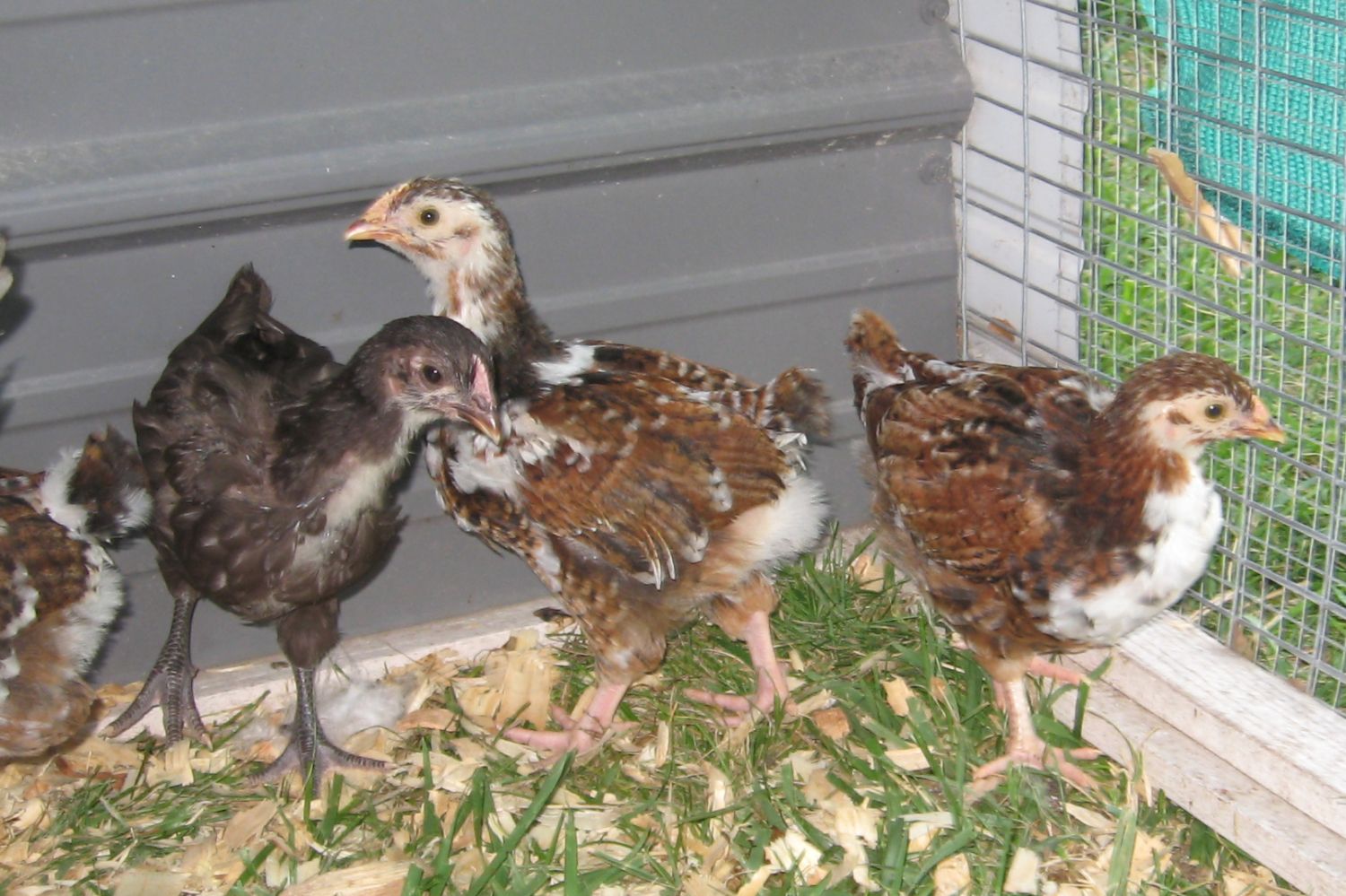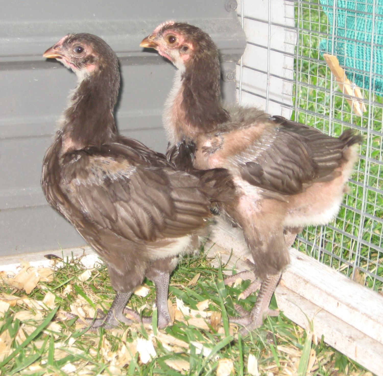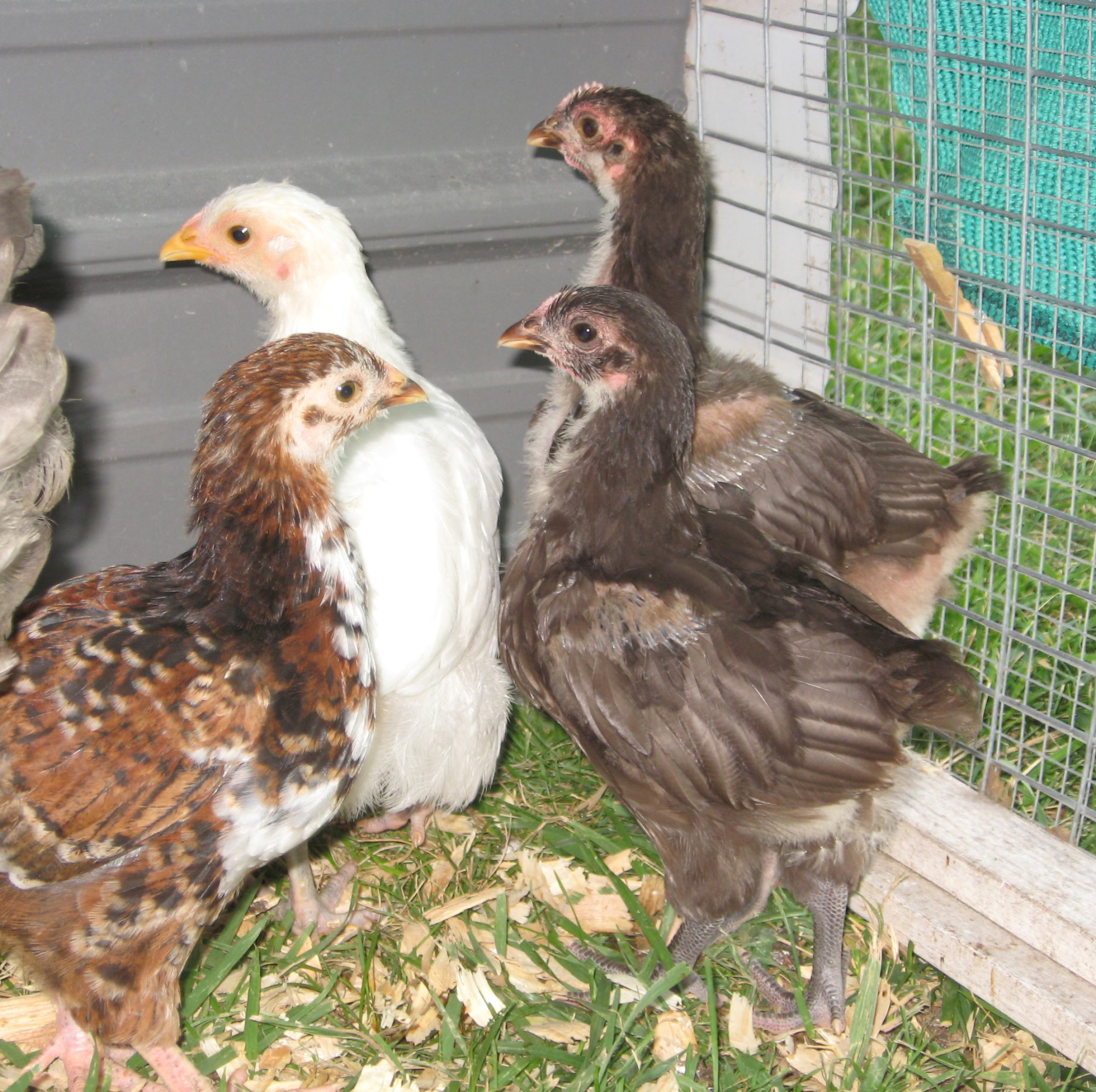 Any input on these babies is welcome. They are still with their moms and integrated into the flock completely except at night when they go back to the hoop to sleep.