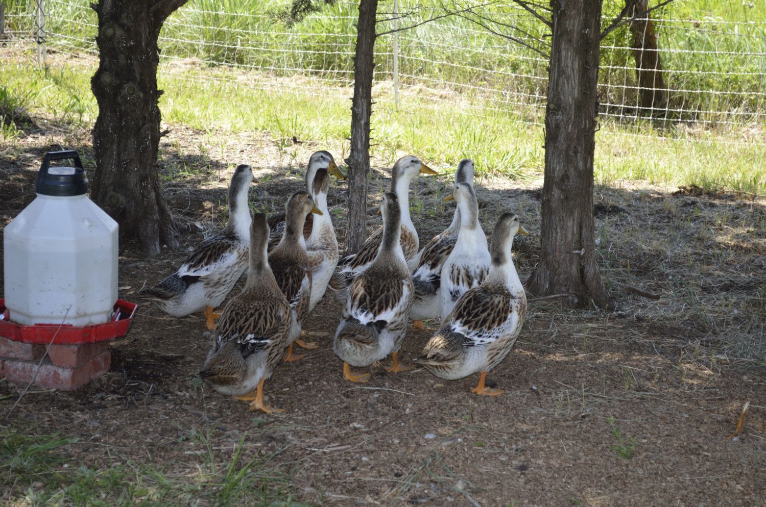 The Silver Appleyards are getting big! I don't think I can tell drakes from hens yet, other than if I pick them up and the hens are the loud ones and I haven't gotten that ambitious. They get the stripe of blue/teal on their wings after the first molt. They keep their distance from the other ducks but Chopper and the drake make forays into the Appleyards when they feel amorous. Then the Appleyards carry on like they are being murdered.