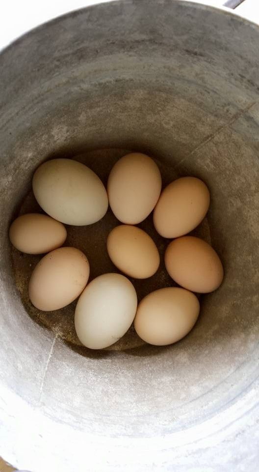 The cutest thing ever are my two Serama mini-bantam hens finally laying - and they lay PEE-WEE sized eggs! Just darling! Not even snack size. Hawksy Roxie, my sweet girl, has befriended me and enjoys taking over my egg bucket when I'm out collecting.