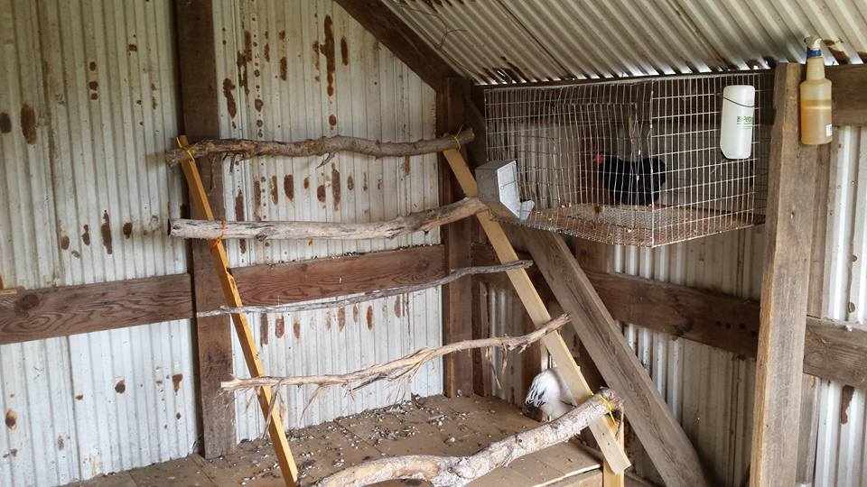 One coop is nests, the other has cages along one wall for separating as needed for wounded or ill or even mating.