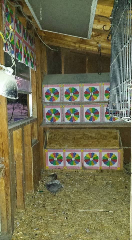 Each coop has a hanging wire cage as well for broody's to cool off and simmer down. lol