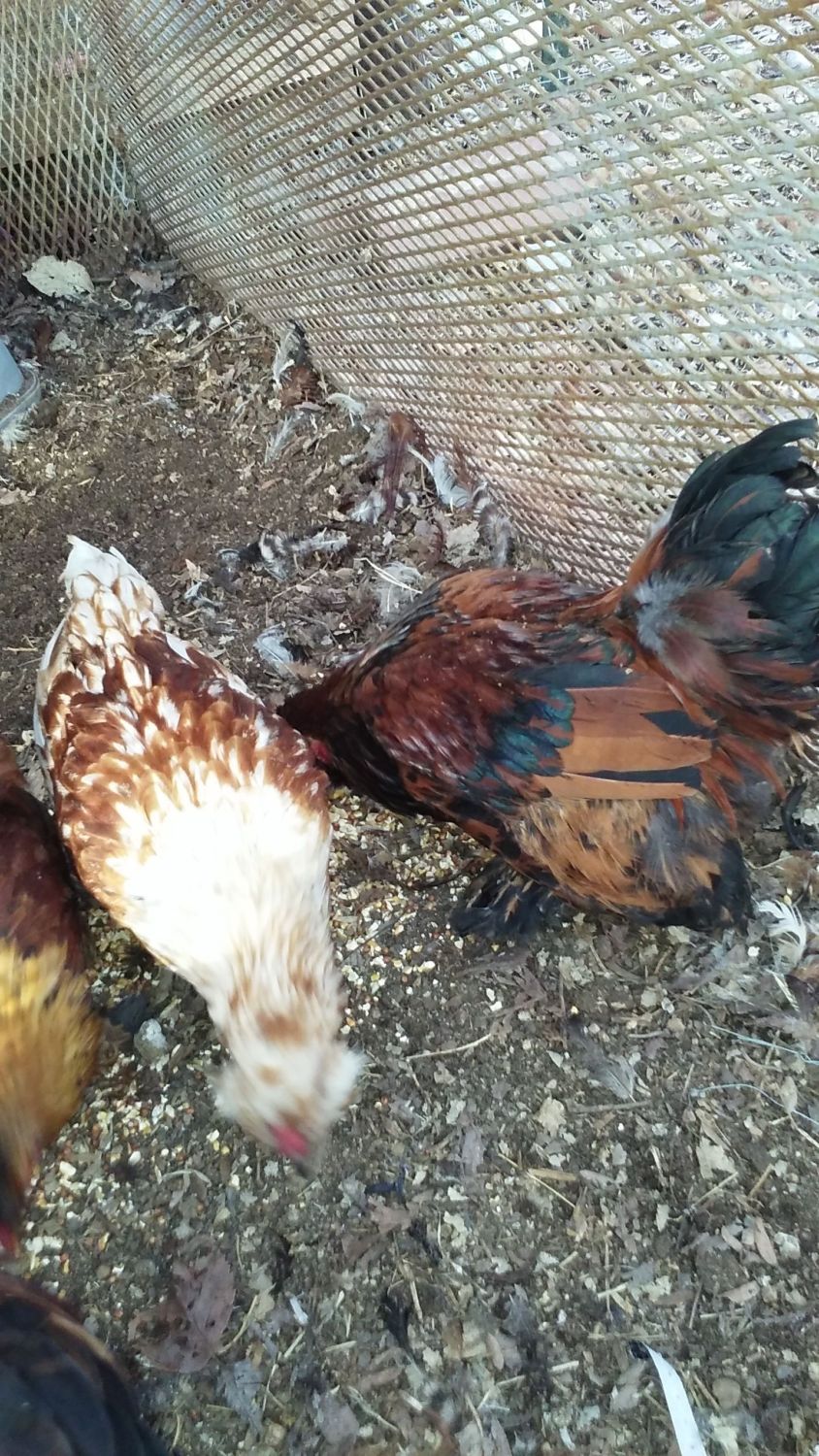 Dad picked up some bird's at an auction today. He was told they're not laying yet, but that's about all. Looks like 4 pullets and a roo to me. Maybe y'all can help me decide what breeds they are.