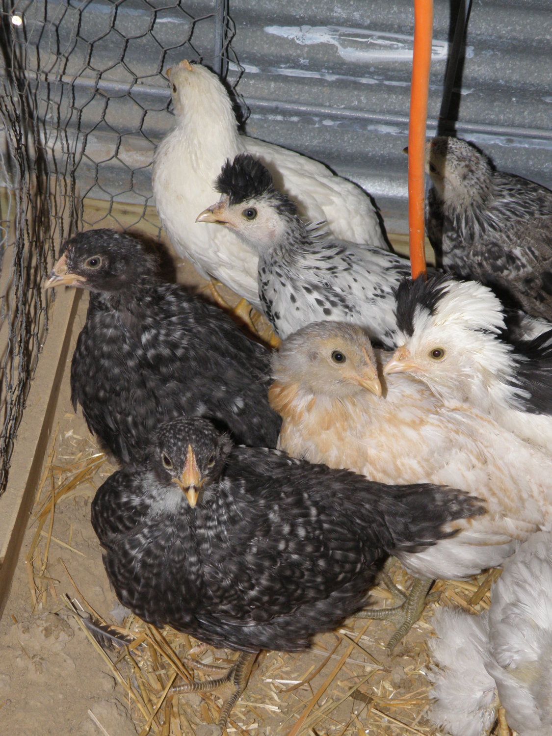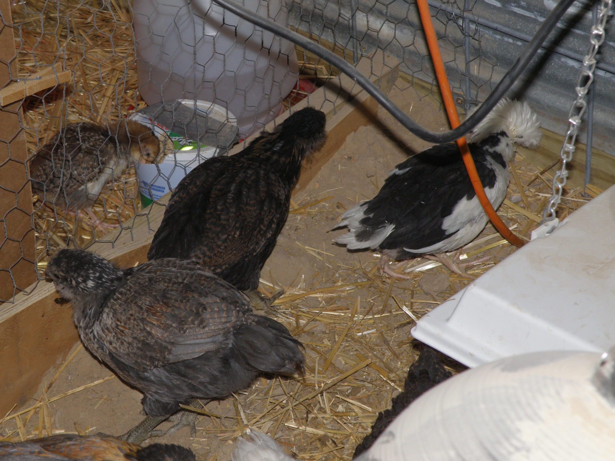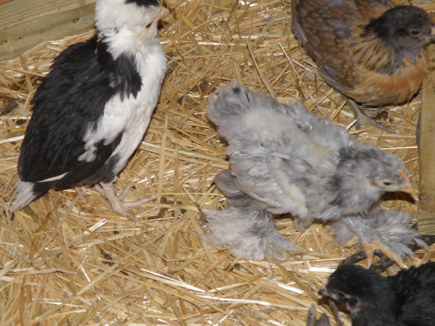 I've had chicks hatching all day yesterday and through about lunch time today in both the incubator and under broodies. Awhile back I put my silkie and 3 cochin hens in my hoop coop, hoping that by keeping them from going broody in the main coop, I'd avoid having 20 broodies at a time like I have the past two years. Broody seems to be contagious and once one does, they all join her. So far so good - the only broody hen in the main coop is that silly little mutt hen brooding on the roosts. The 4 bantams in the hoop coop went several weeks without going broody which is pretty amazing for silkies and cochins in spring. Then a NH broke into the hoop coop so she could go broody in there and as soon as she started sitting, the 3 cochins joined her.