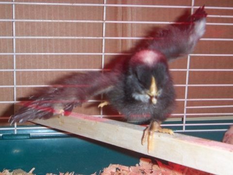 Marc, I made a baby chick roost that I think works awesome and cost like nothing to build because I used scraps from around here. I simply made two A frames out of 1/2's spit in half, connected with another one across the top. There is a board in the center of each A frame so they actually look like As if you look at them. Then I strung a wire from the center board from one side to the other. I put a handful of washers on the wire so they slid back and forth. I can't get a picture at the moment cause it is out in one of the houses. At any rate this contraption sits about 12 inches or so tall and maybe 2 foot long. The chicks love to roost up there when they start the roosting thing and the small chicks pick at the washers on the wire when they get bored instead of picking at each other.