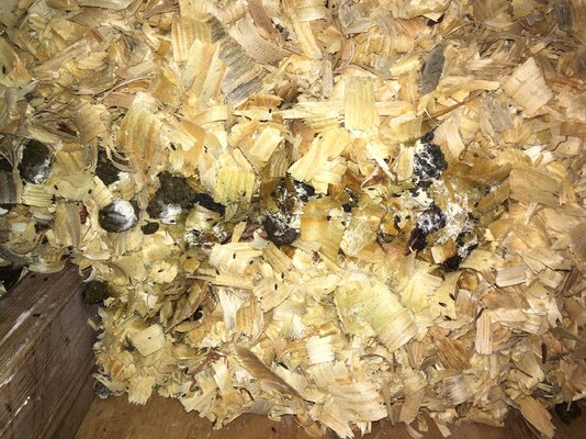 -At least 4 of the 10 (for sure the 2 Wyandottes and maybe 1 of the barred rocks) have had chronic diarrhea since mid-January 2022 (approx. 6 weeks). I just replaced all the coop pine shavings bedding in mid-January; the original litter was in there since May of 2022 and dry as a bone (deep litter method). After only 6 weeks, the new pine shavings are becoming completely soaked in wet poop (please see photos). All kinds of little bugs (nats) are draw to it.