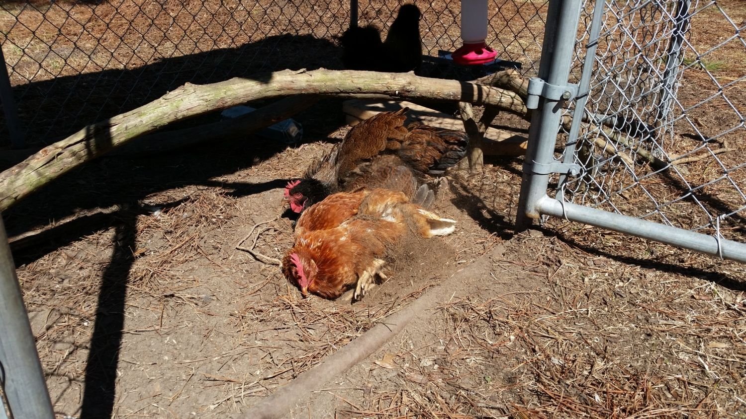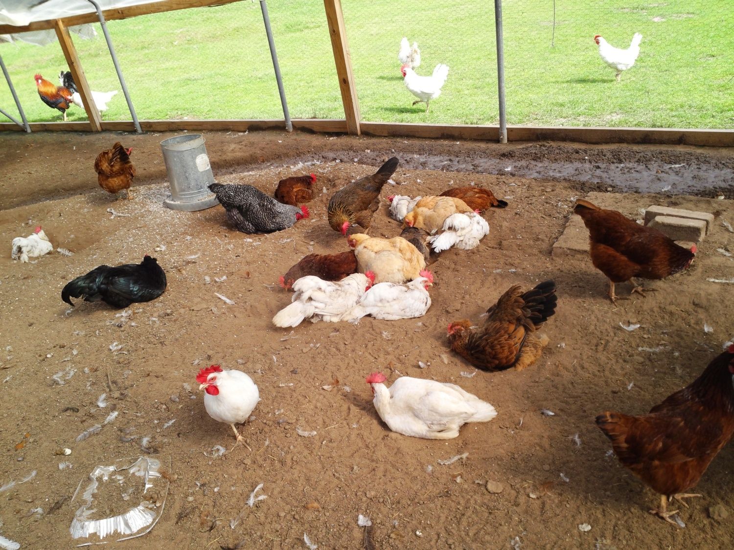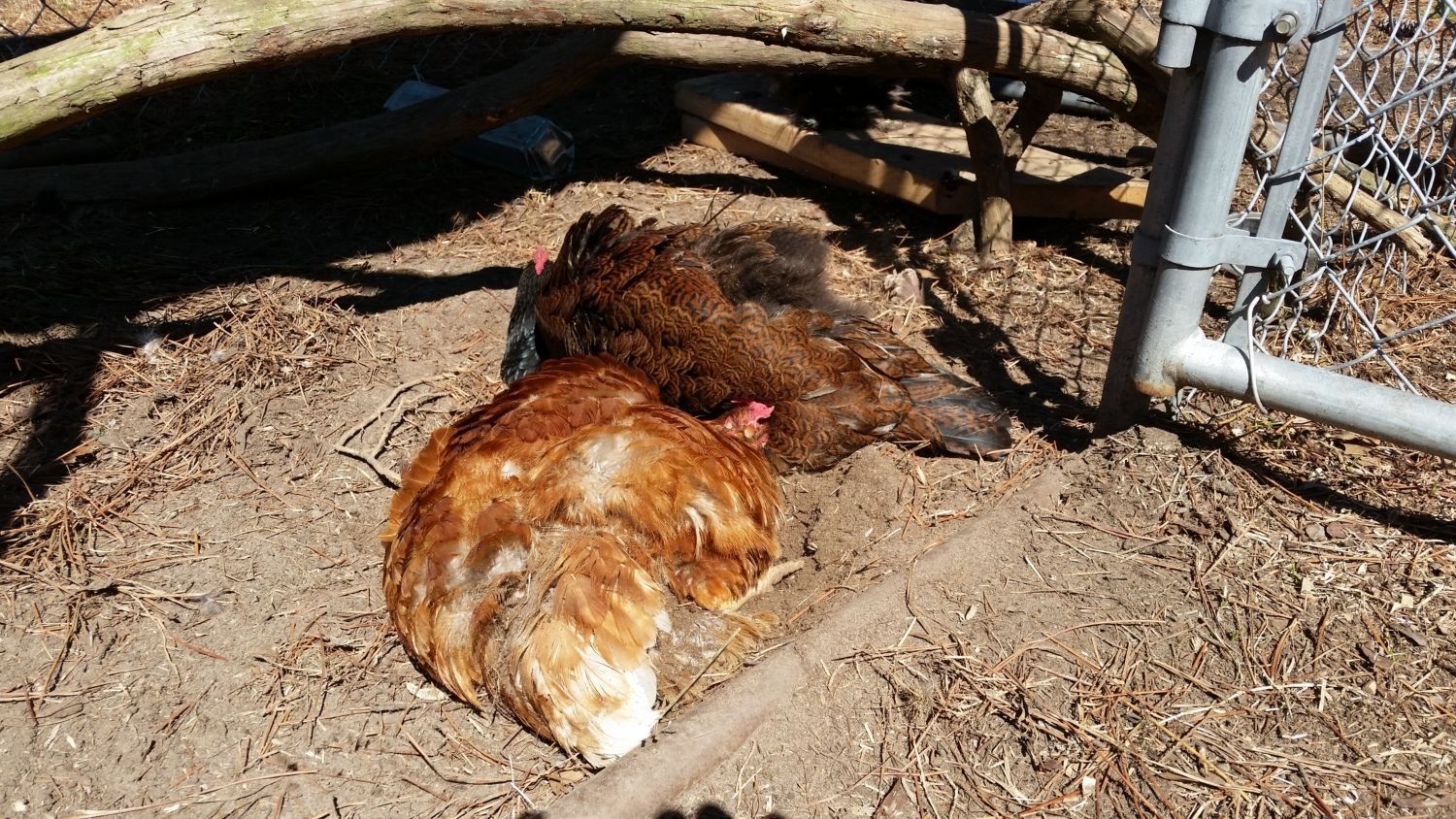 Today my Ameraucanas broke out of their pen to break into the Jersey Giant's just to dust bathe in their coop... while a JG was laying an egg... she was NOT amused, lol...