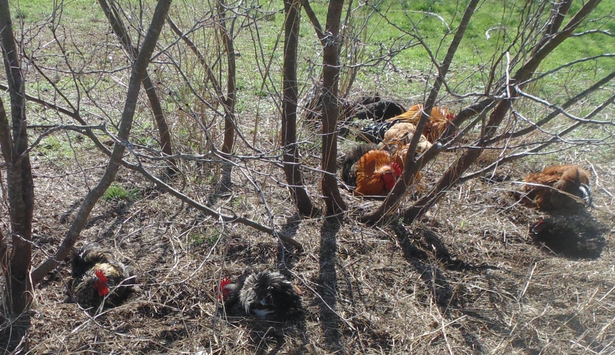 Apr 2, 2015 #57 chicken farmer Songster 10 Years Joined Feb 7, 2012 Messages 1,505 Reaction score 100 Points 244 Location Southern,Ohio My second entry: Some of my flock dustbathing under the old cedar tree
