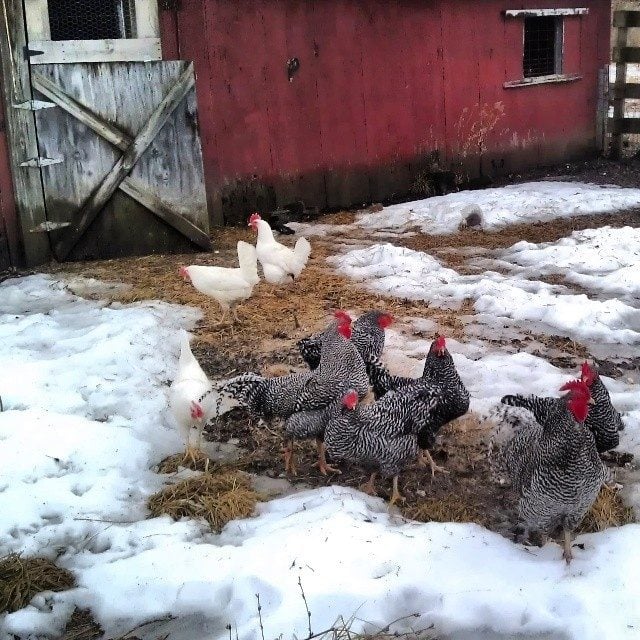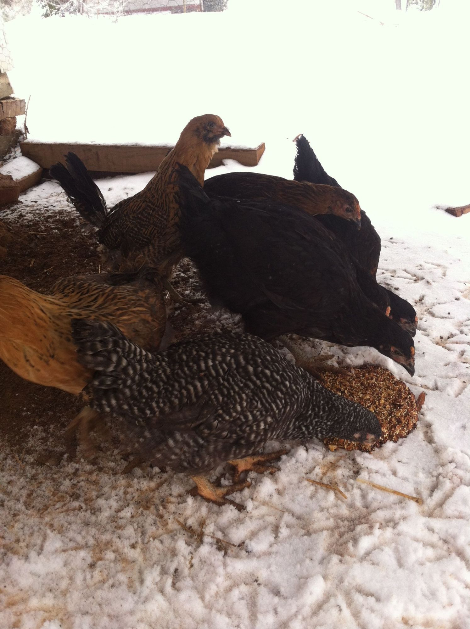 This was my first winter with chickens & everyone made it through the Chicago polar vortex(es). My spoiled chickens preferred to bask in the sun & simply look out at the snow . The 1st 2 pics are my entries. The 3rd is just for fun.