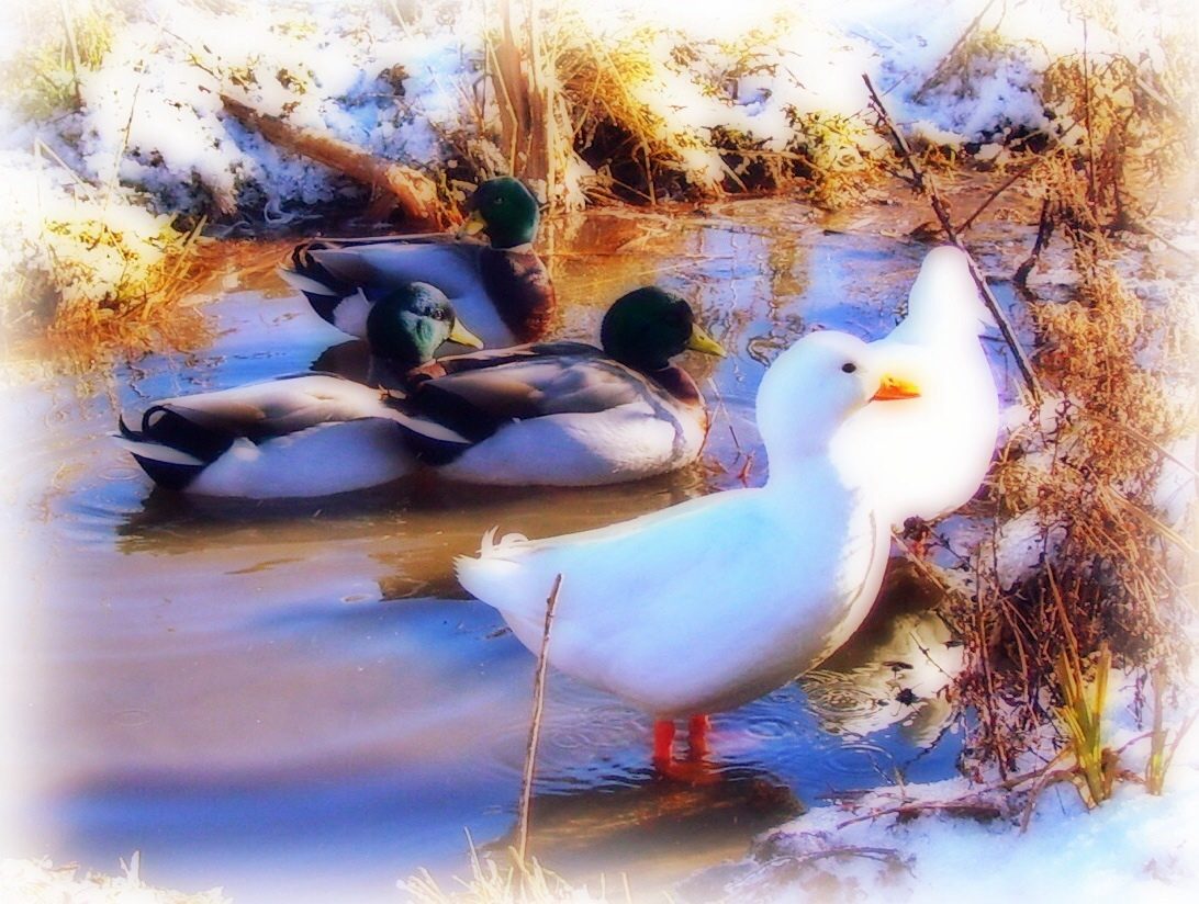 My little call duckies, just happy to have a puddle, even though its 0 out or something like that. Not sure if it counts as photo shopped, if it does and is disqualified that's ok.