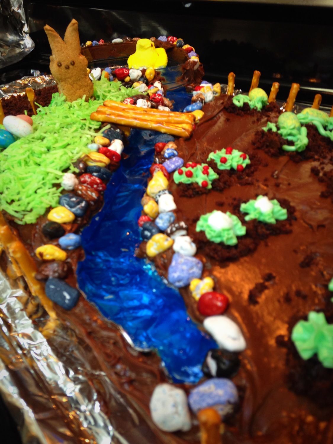 And the basket is Rice Krispie Treat form with Butter Cream Icing piped with basketweave technique.
