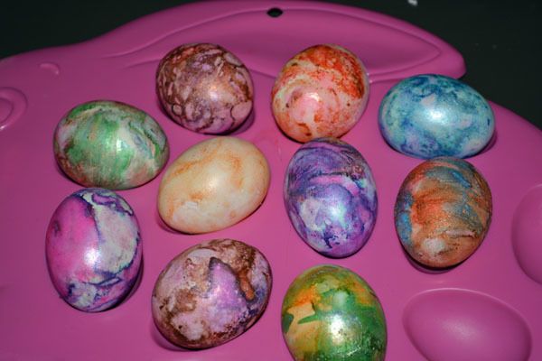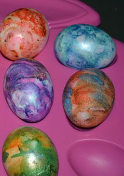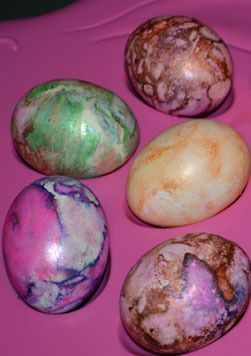 Directions and photos of my kids making them here: http://www.littlecrunchy.com/2013/03/a-different-way-to-dye-easter-eggs.html