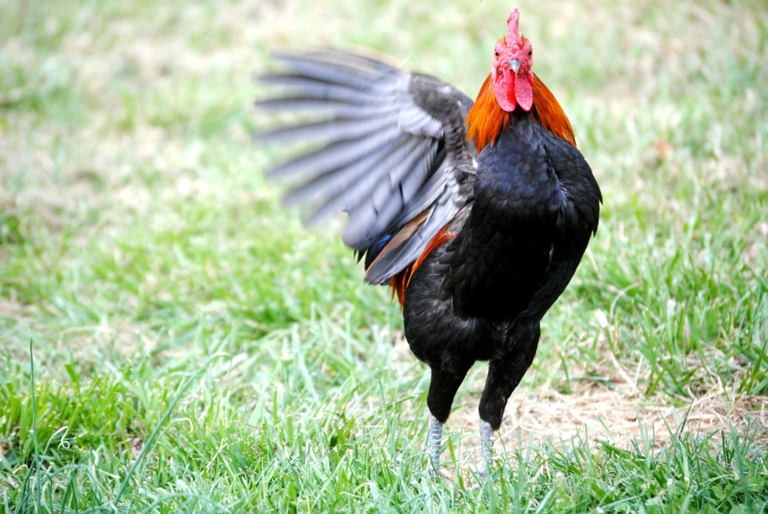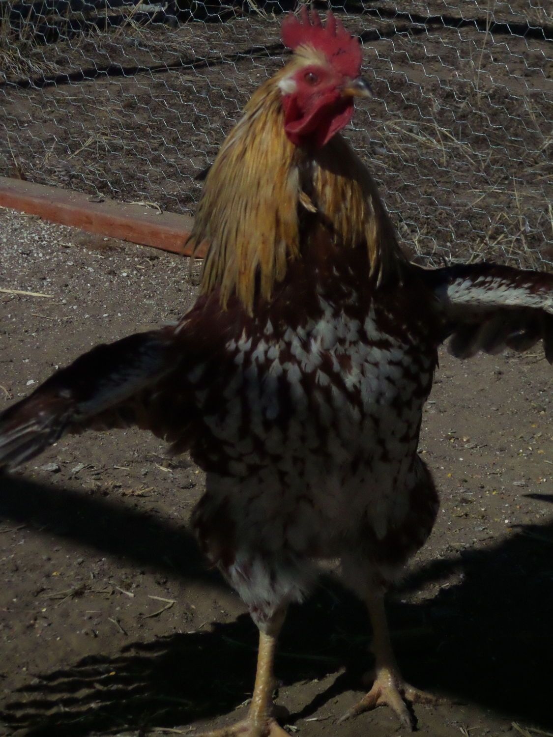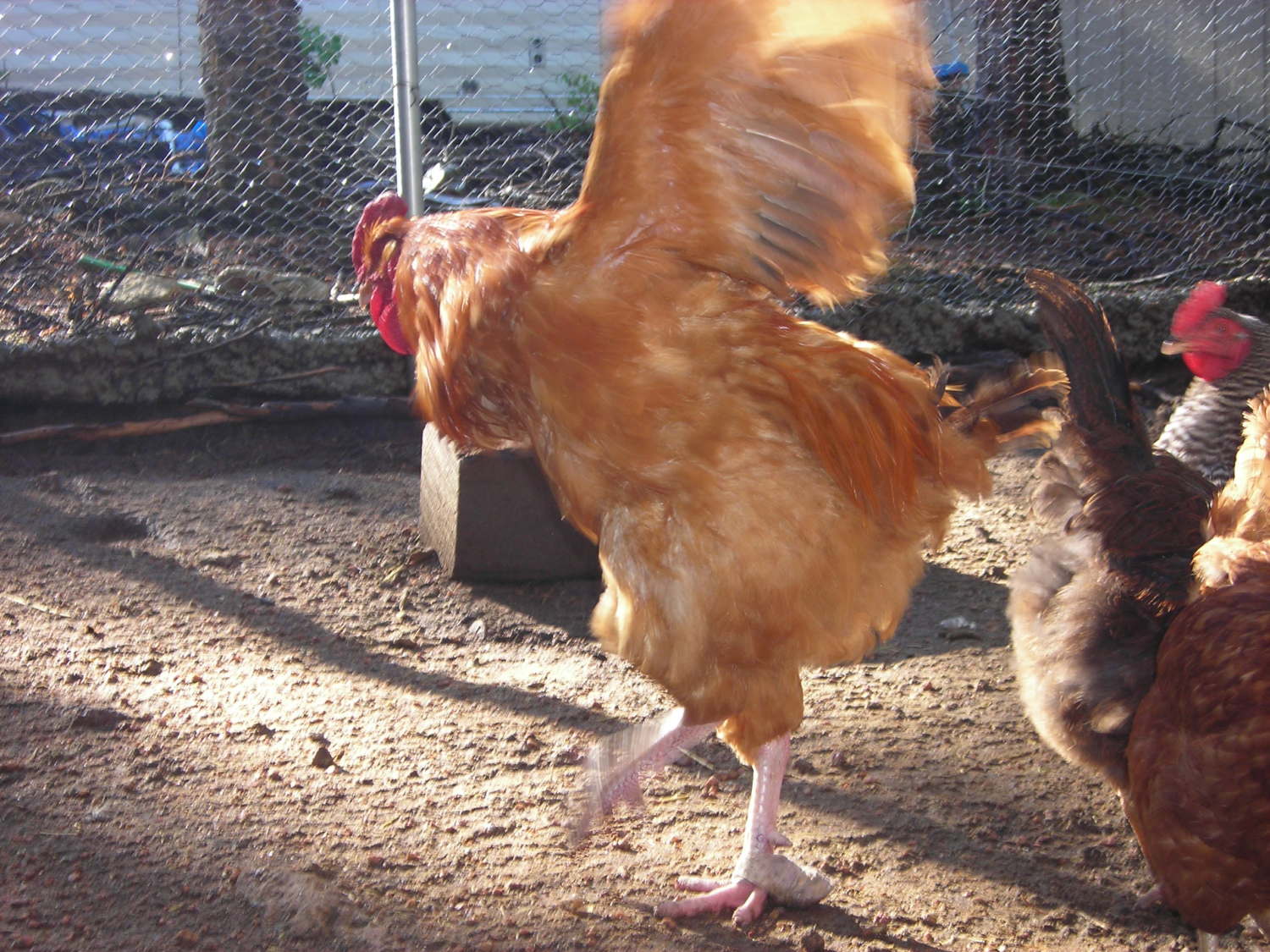 This is our ever handsome Banty, 'Remington' flapping his wings. He almost looks like he's strutting for the ladies, hehe.